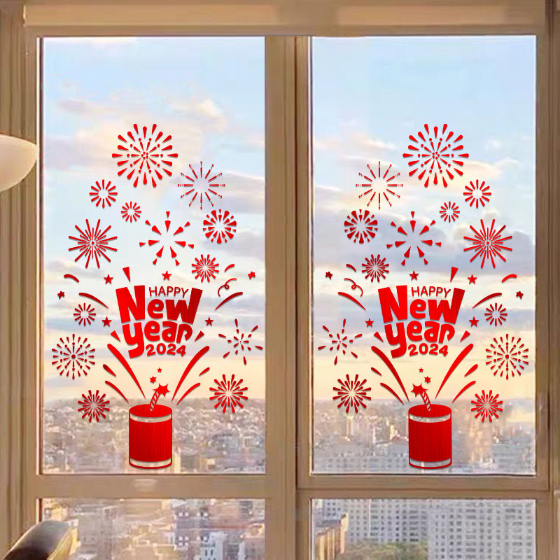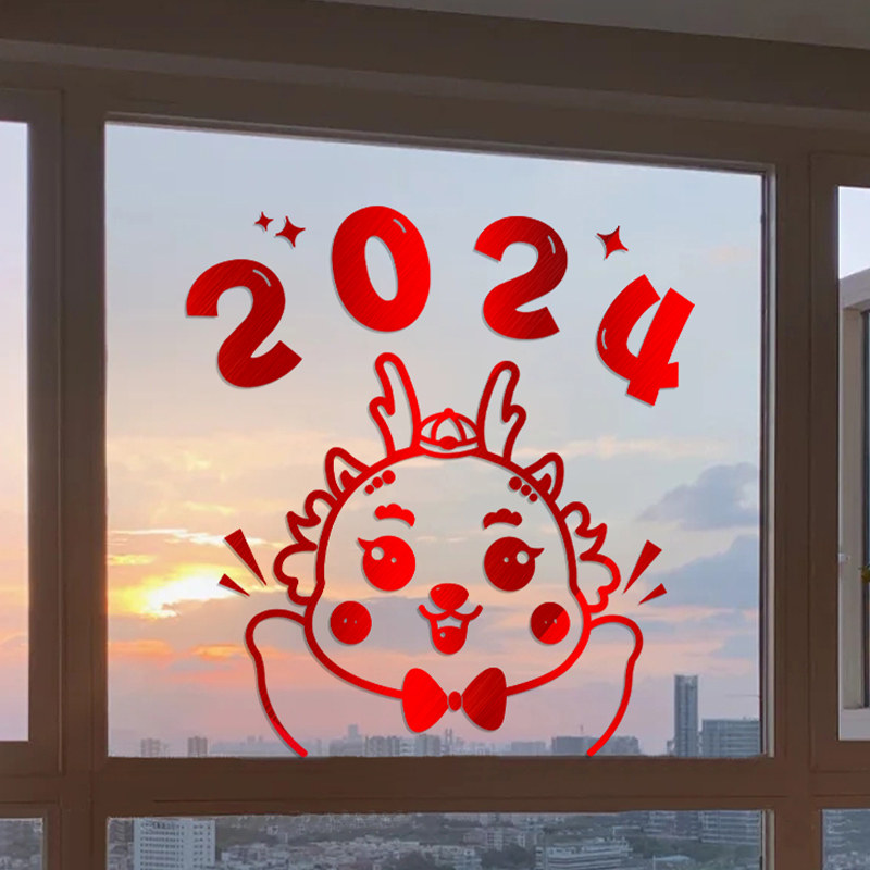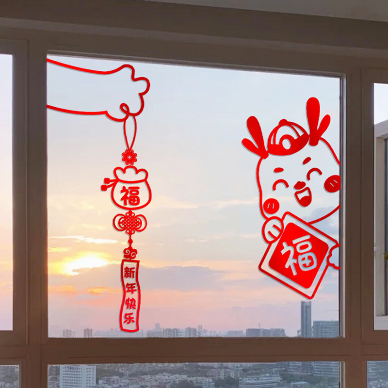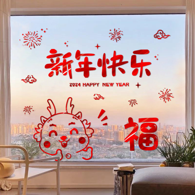 New Year decorations stickers 2024 new Spring Festival Happy New Year Happy glass windows applie windows with red festive atmosphere arrangements-Taobao