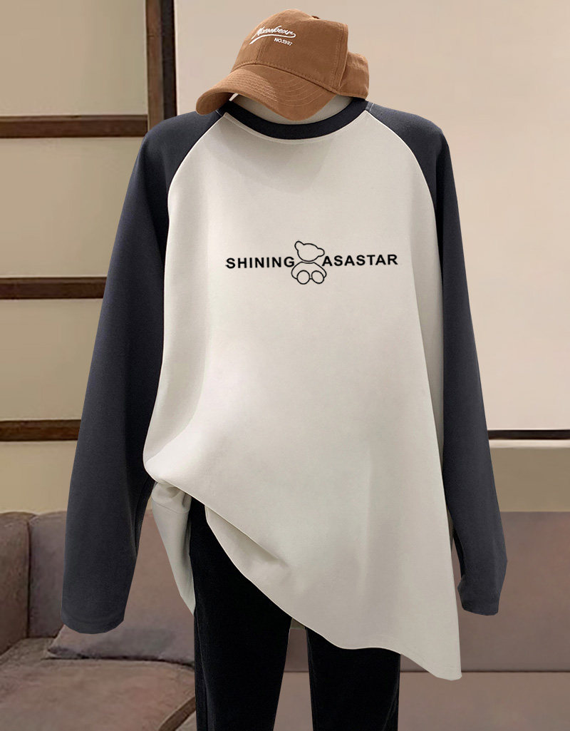 Pregnant Woman Inserted Shoulder of Shoulder Color Grinding in Long sleeves T-shirt Long-style Loose Blouse Over Hip Thickened Beat-to-Autumn Winter-Taobao