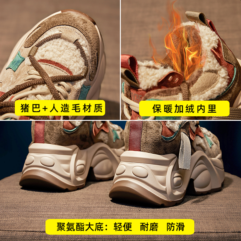 Old Daddy Shoes Women Winter Plus Suede 2023 New Anti-Chill Warm Cotton Shoes Retro 100 lapped thick bottom internal heightening fur shoes-Taobao