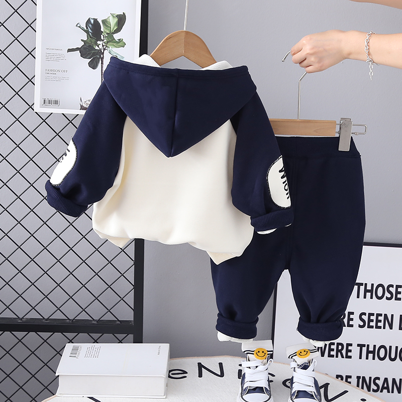 Children's necropolis suit boy autumn winter 2023 new girl foreign gas trendy plus suede thickened warm two-piece set-Taobao