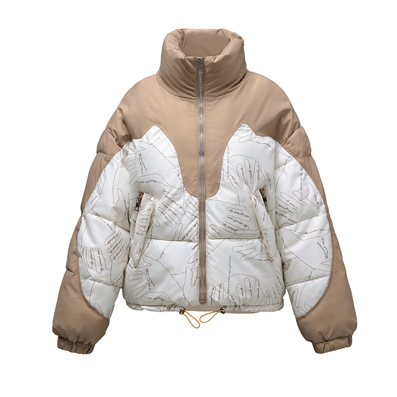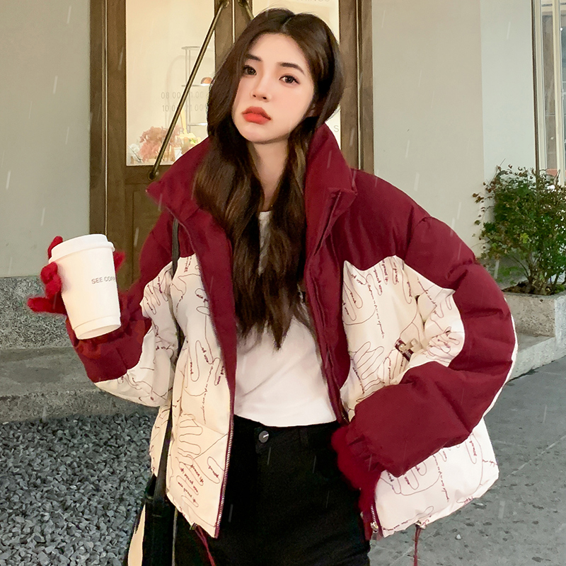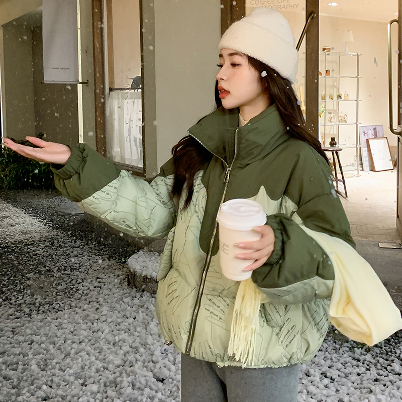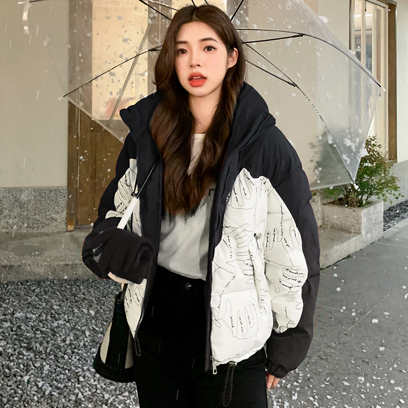 Duck Ducks with the same paragraph 2023 New down cotton clothing Female short style Fashion design Feel Printed Splicing Easy collar bakery-Taobao