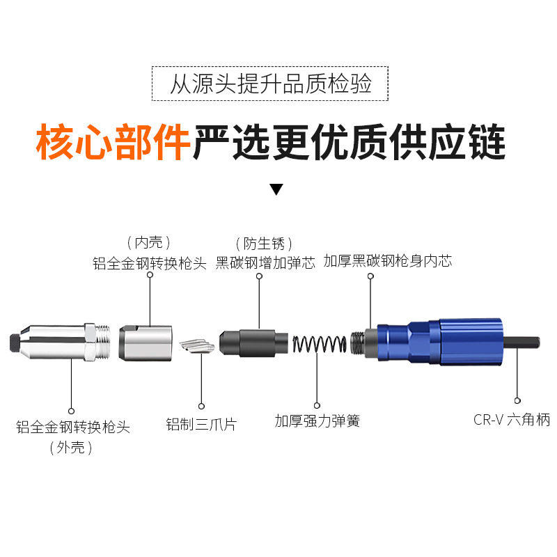 Electric Rivet Gun Pull Riveter Core Conversion Head Snap-Pull Nail Pull-In-Head Willow Nail Aluminum Alloy Nail Riveting Latin-Taobao