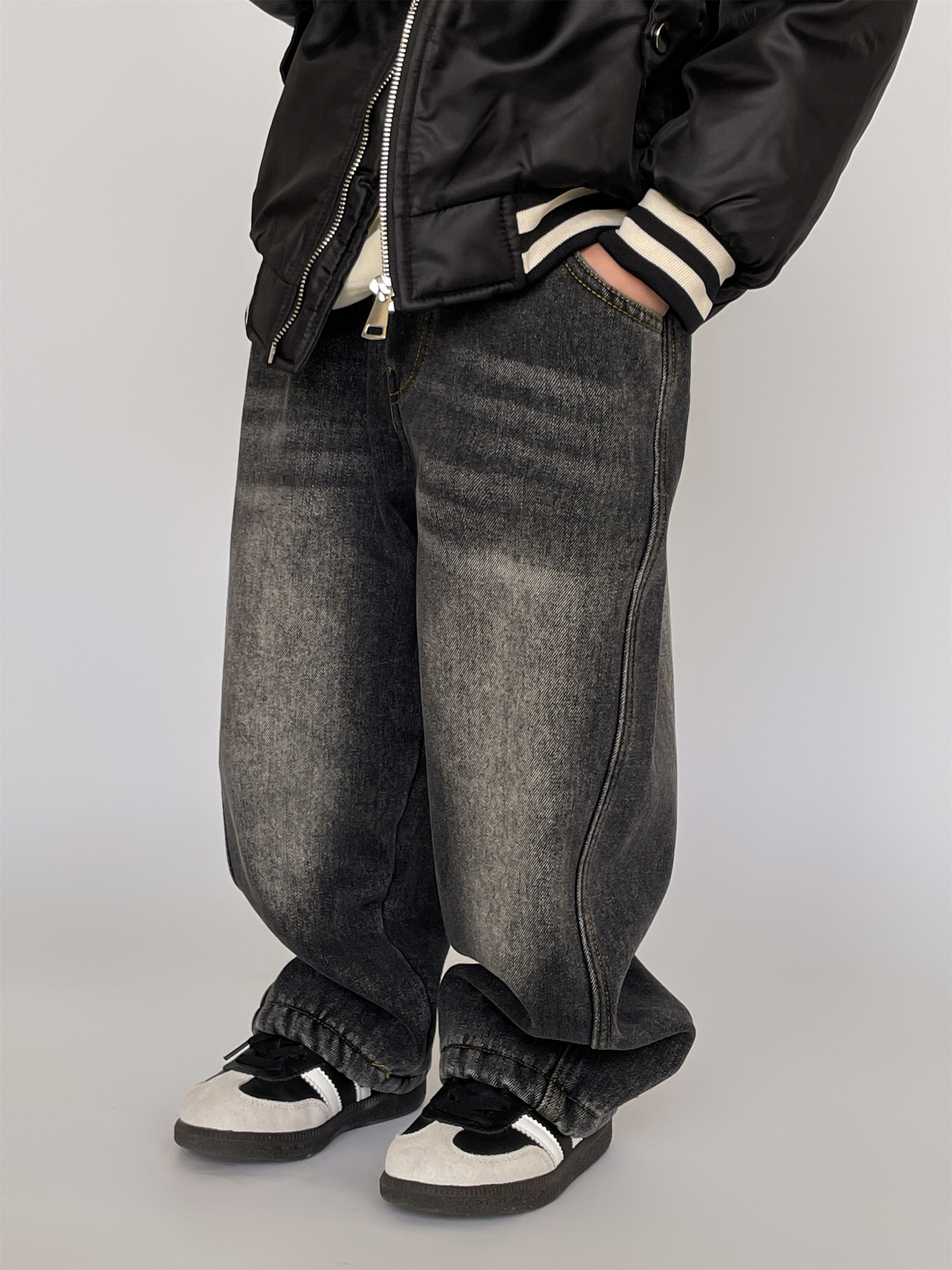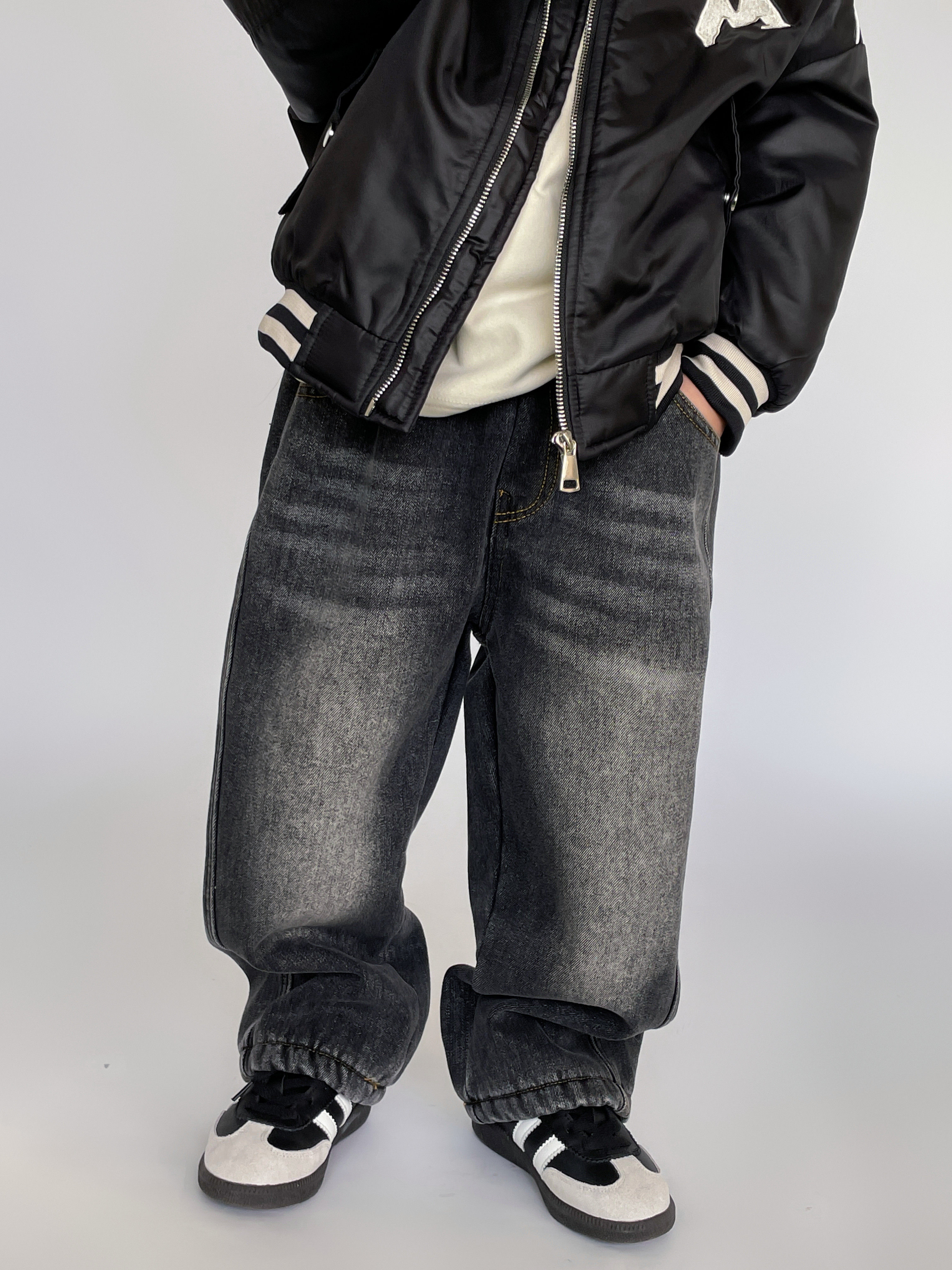 Child Gush Jeans Soft Trendy New Winter Clothing Boy Integrated Suede Pants Baby Warm Loose Long Pants Tide-Taobao