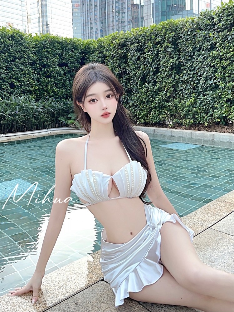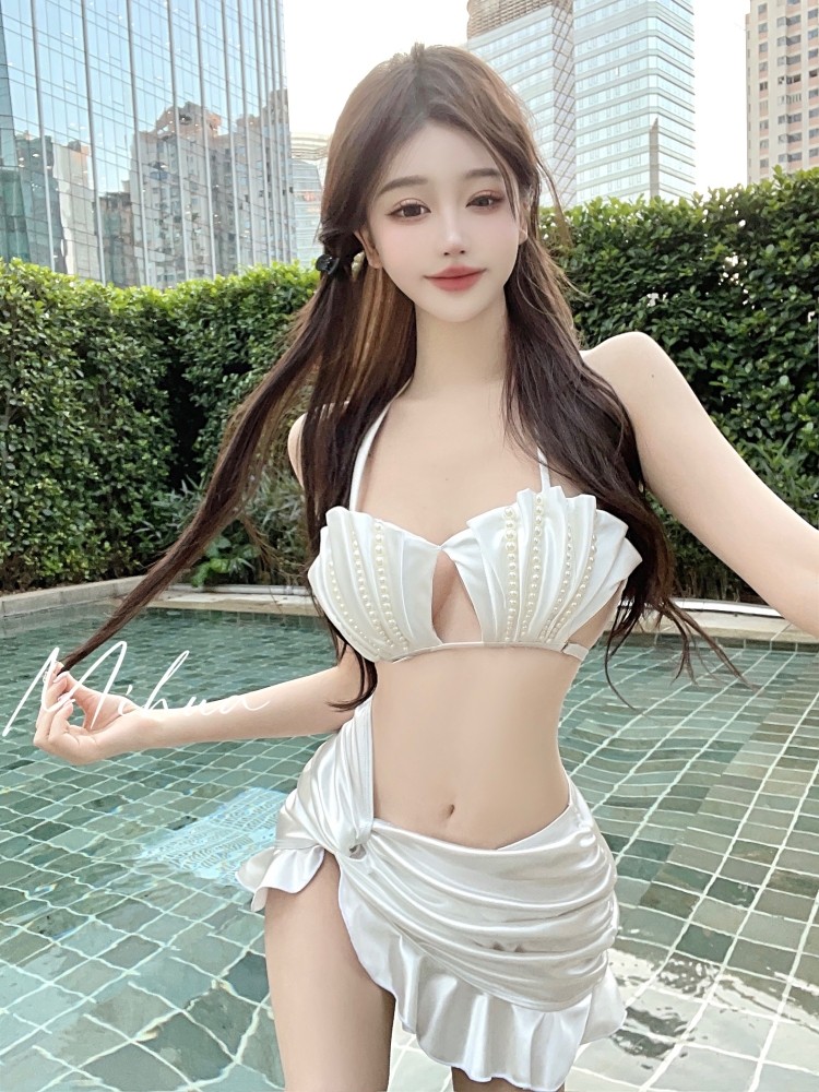 Miss rice flower swimsuit female bikini sexy hot spring original 2025 new skirt style three-piece set with small breasts gathered