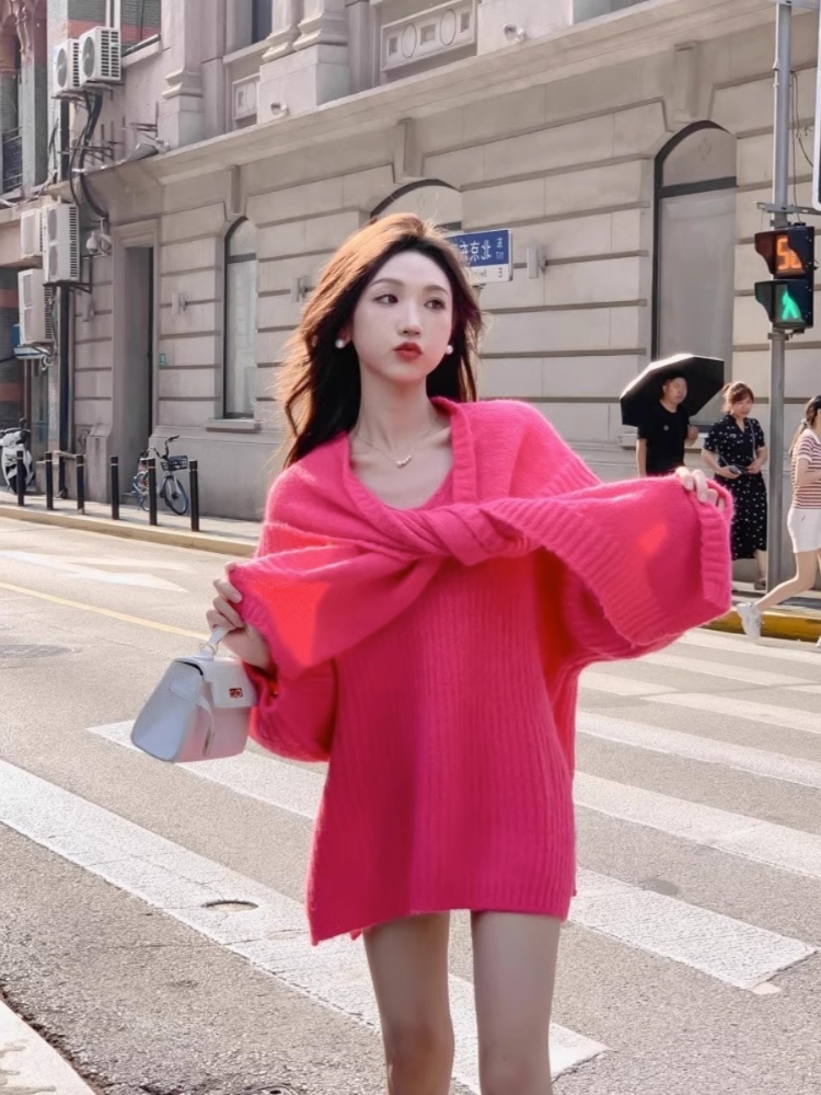 Rose Red Small Sublian Cap Sweater Women's Autumn Winter 2023 New Exploits Thicken Set Loose With Lazy Wind-Taobao