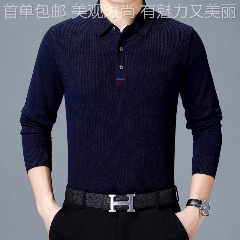 Spring and autumn season New flipped men's slim fit pure-knitted sweatshirt middle-aged 8828-lk Dad color dress collar men's clothing bottom hair-Taobao