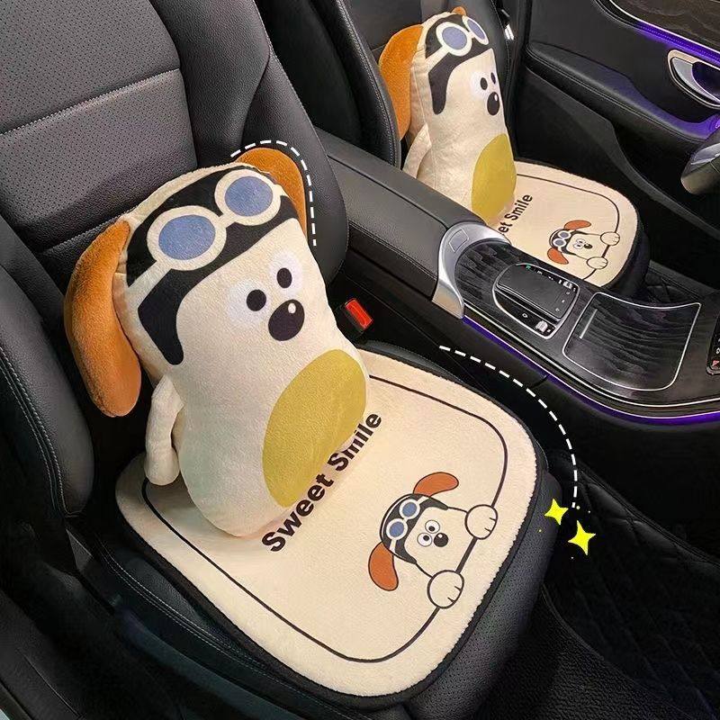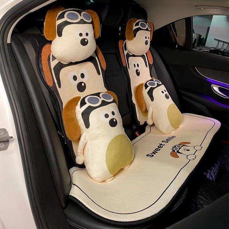 Cartoon plush small dog square cushion cartoon plush small dog square cushion * 2 cartoon plush small dog single seat backrest base cartoon plush small dog right side driving cartoon plush small dog three sets (no backrest)