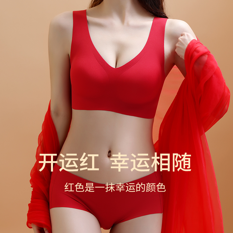 Red wedding lingerie female brides with no steel ring to woo small breast-free bra hood suit This life year belongs to the dragon gift box-Taobao