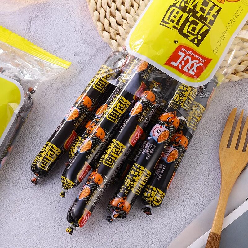 Double Tandem Bubble Noodle Pat Fire Leg Sausage 80 Bubble Noodles Partner Sausage Meat Sausage Ready-to-eat Casual Snacks One Whole Box Wholesale-Taobao