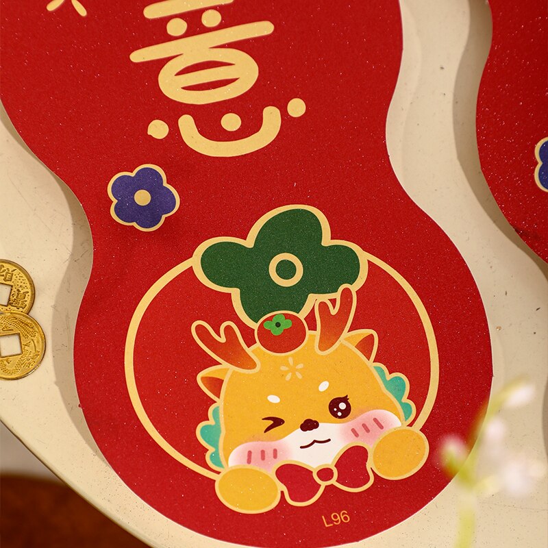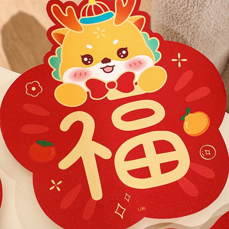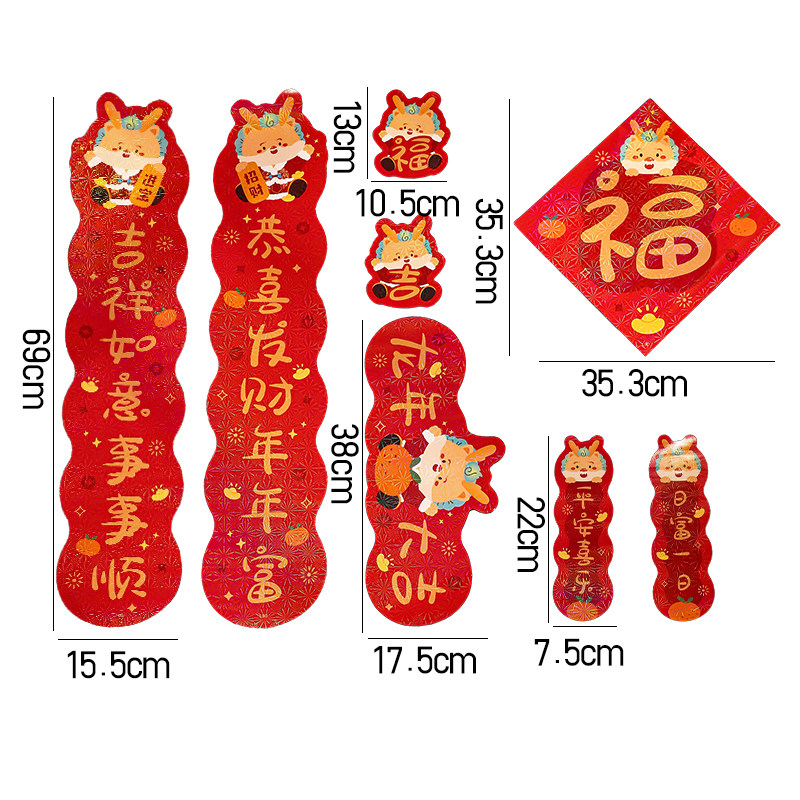 Couplets for Spring Festival 2024 New Year's New Year Spring Festival New Year's New Year Cartoon Creative Home Door Flowers Character Window Flower Red Bag-Taobao