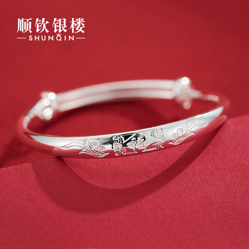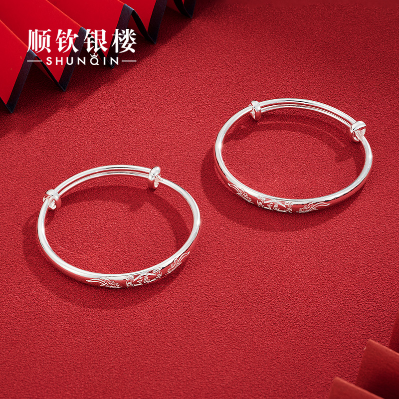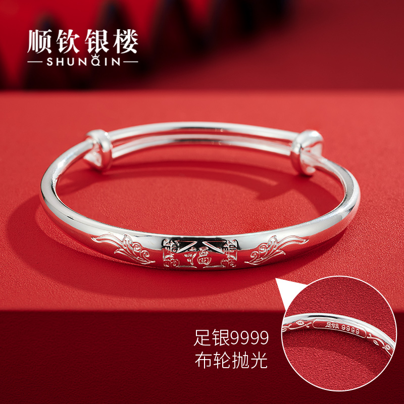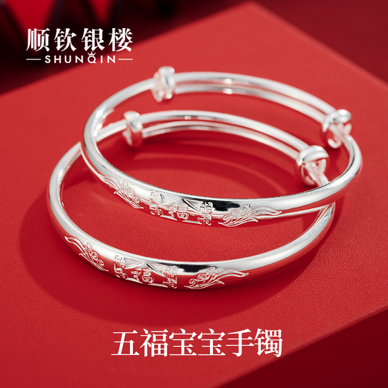 Shunqin silver building S9999 pure silver Wufu baby bracelet foot-bracelet foot silver to the bracelet baby kid full moon-Taobao