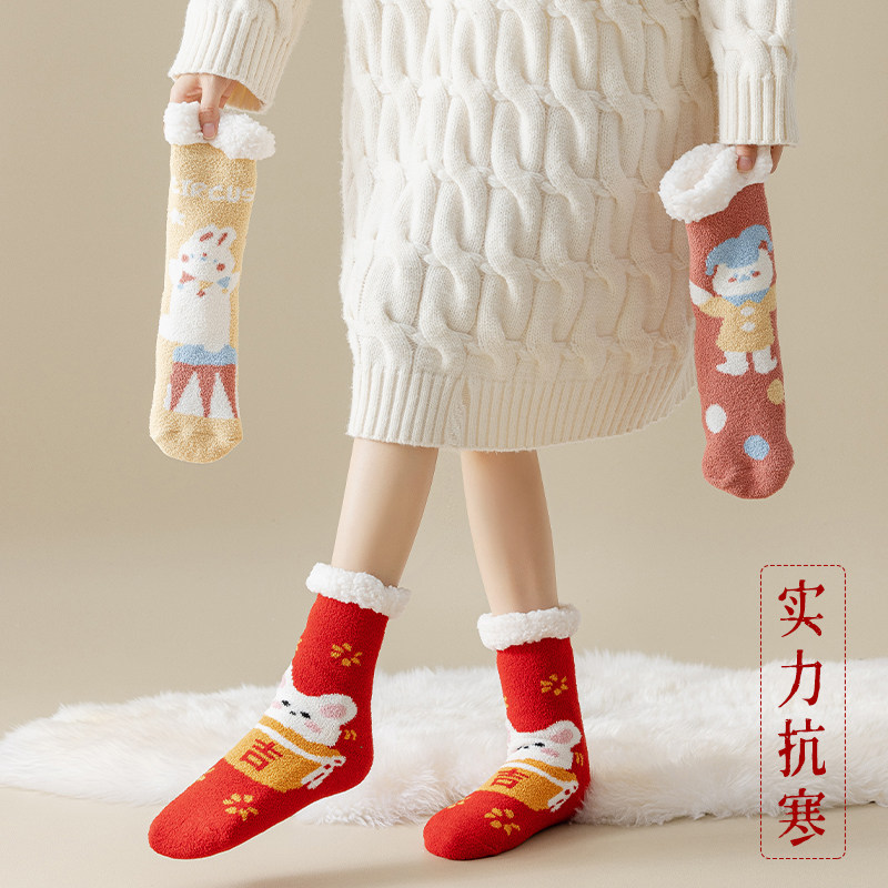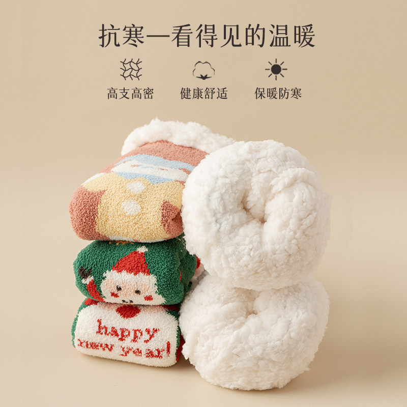 Lamb Suede Socks Children Autumn Winter Plus Suede Thickened Warm Feet Socks Home Sleep Plush Warm Moon Socks Floor Christmas-Taobao