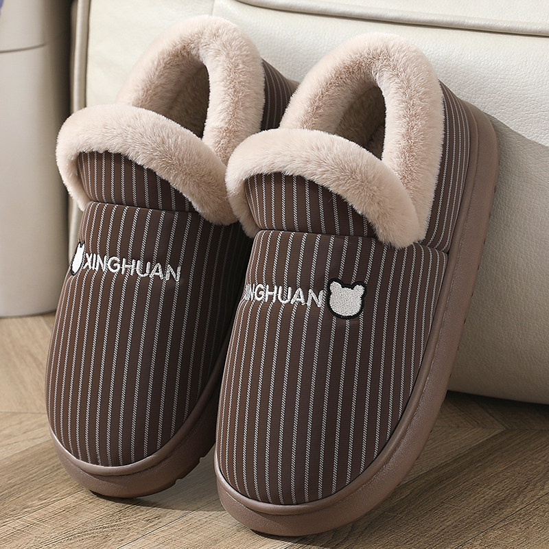 Thick bottom waterproof cotton slippers men's autumn winter bag heel indoor home with non-slip warm big code moon cotton shoes woman-Taobao