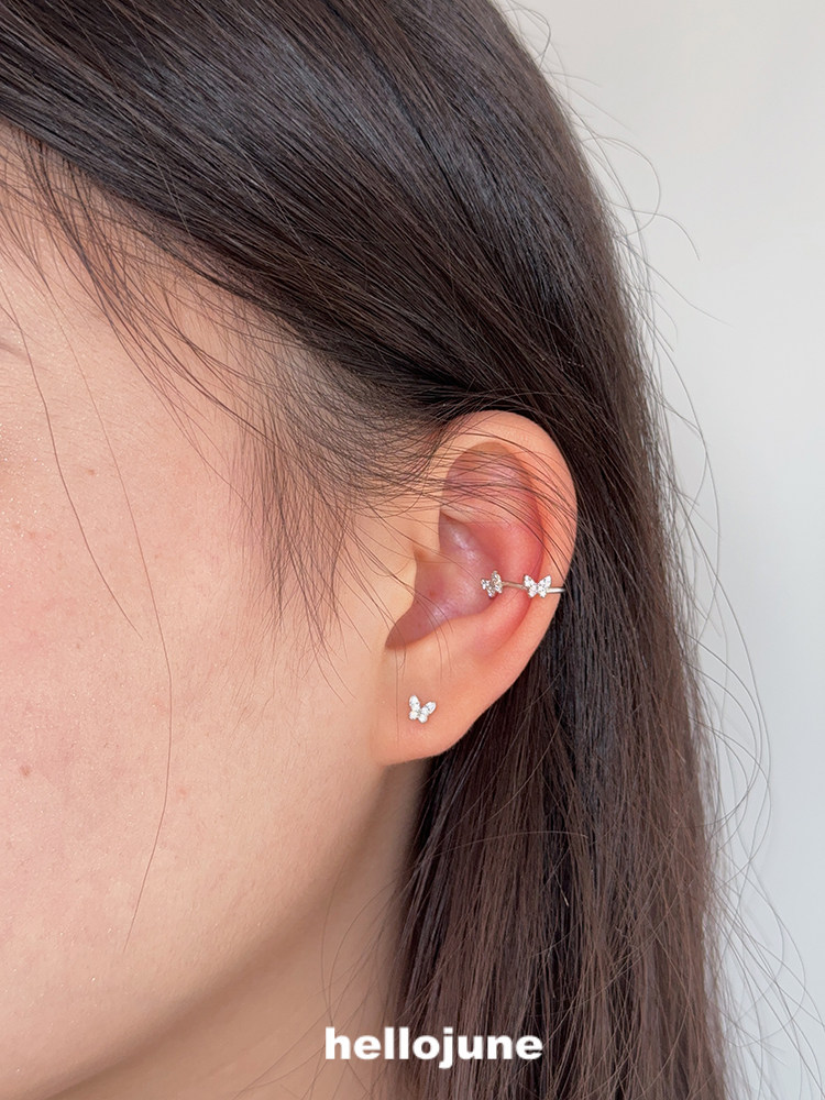 hellojune 925 pure silver Mini small butterfly ear clip ear clip-Taobao