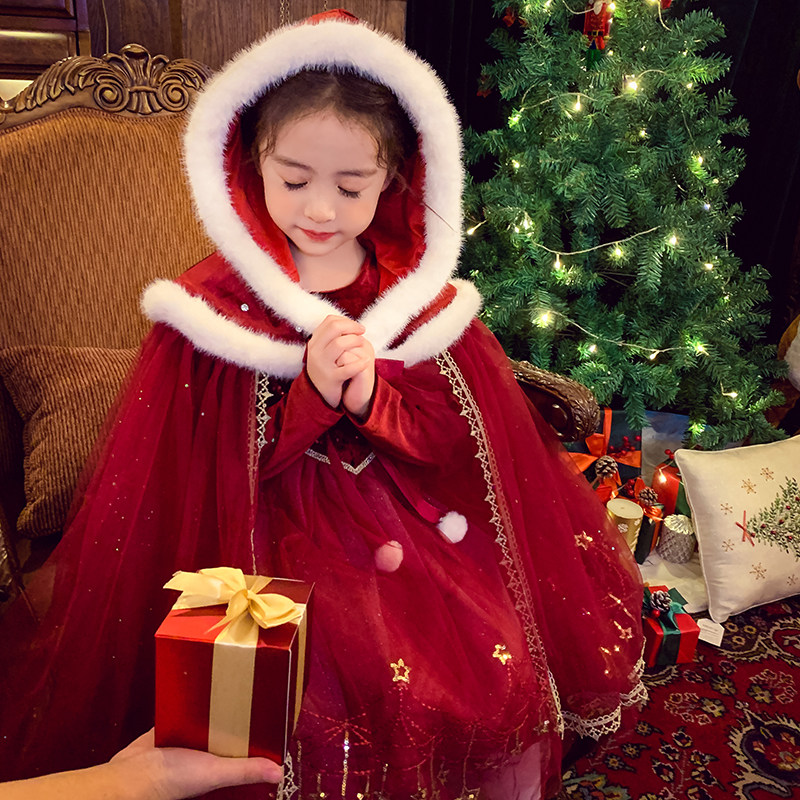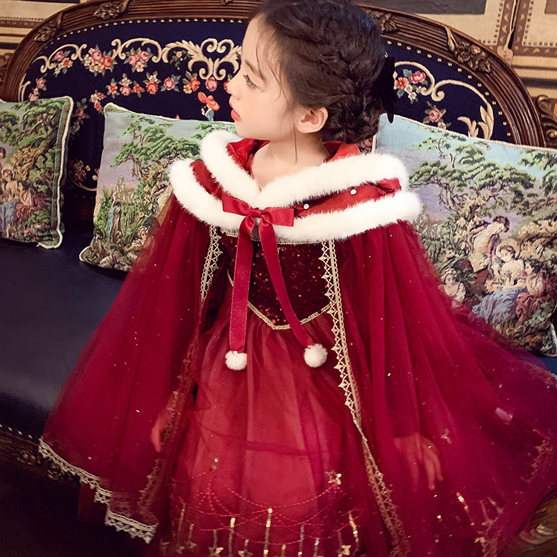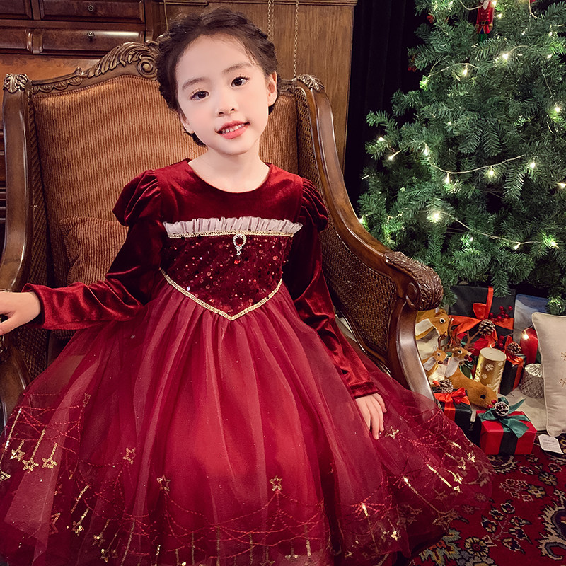 Girl gush with dress winter clothing 2023 new foreign air children Aisha Princess Leia dress little girl Christmas gown skirt-Taobao