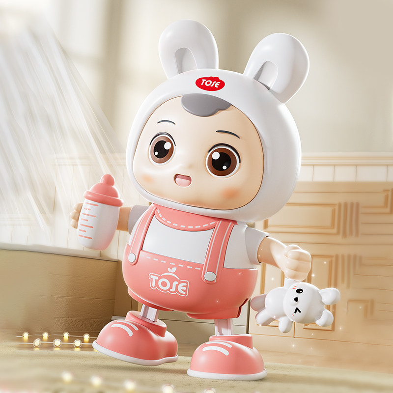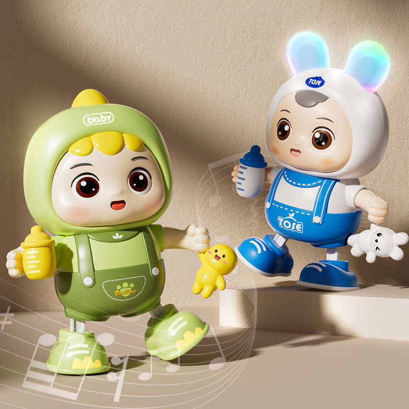 (full range of features upgrade⭐exquisite gift boxes for gift giving atmosphere) gift boxes❤electric dancing dinosaur-green (48 first music seven colorful lights) battery version gift box dress❤electric dancing rabbit-powder