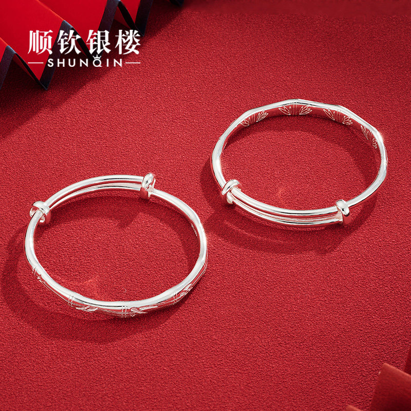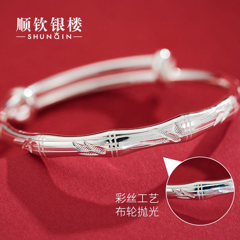 Cischon Silver Building S9999 Pure Silver Baby Bracelet Colorful Silk Bamboo Festival Children's Foot Silver to Baby Full Moon-Taobao