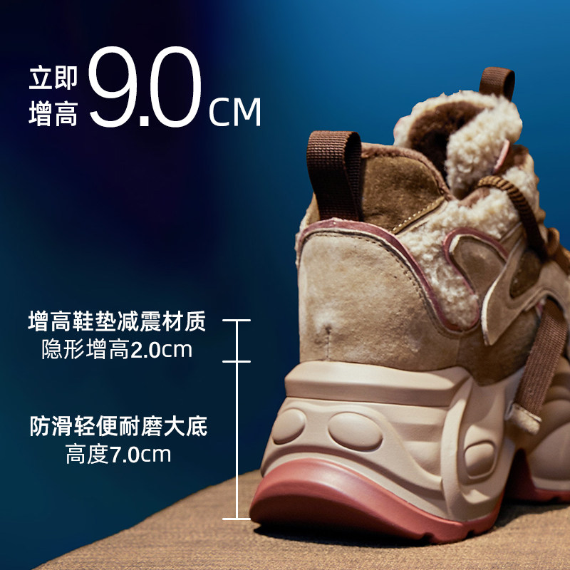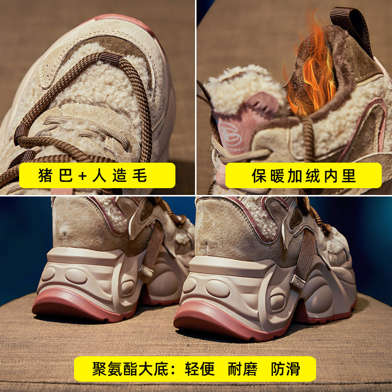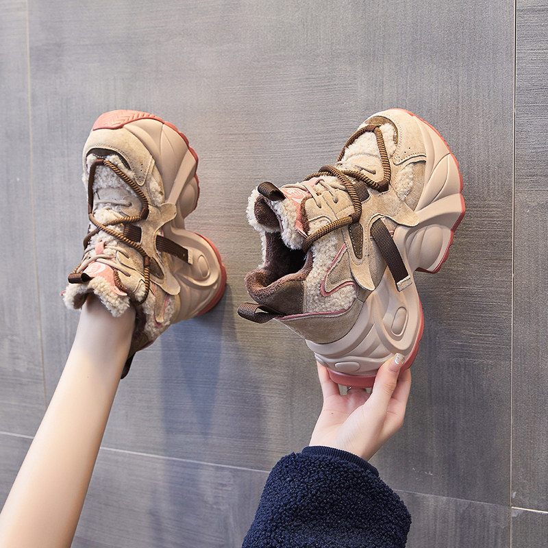 Tennis Red Old Daddy Shoes Woman Superfire 2023 Autumn Winter New Plus Suede Warm Cotton Shoes 100 lapped thick bottom inner heightening women's shoes-Taobao