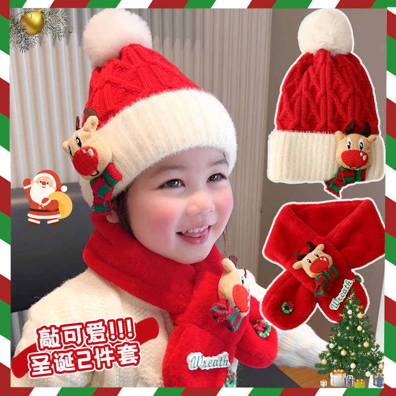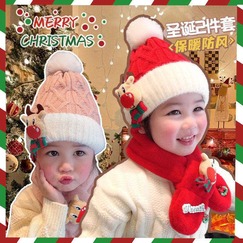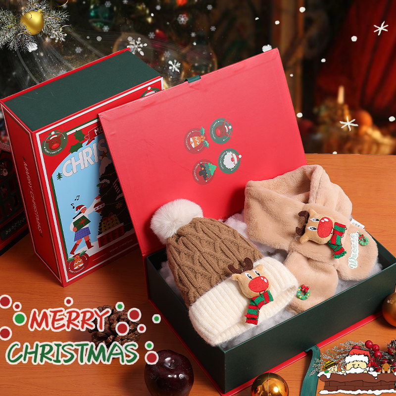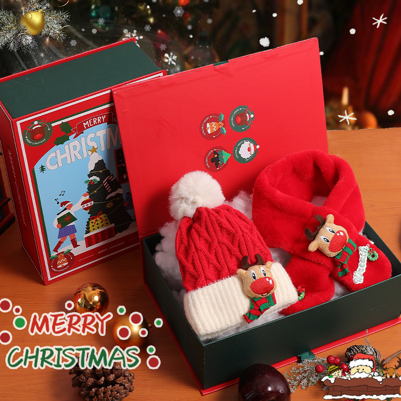 Children Christmas Elk Scarves Scarves Hat Suit Gift Box Thickened Wool Hat Girl Baby Festival Gift Autumn Winter-Taobao