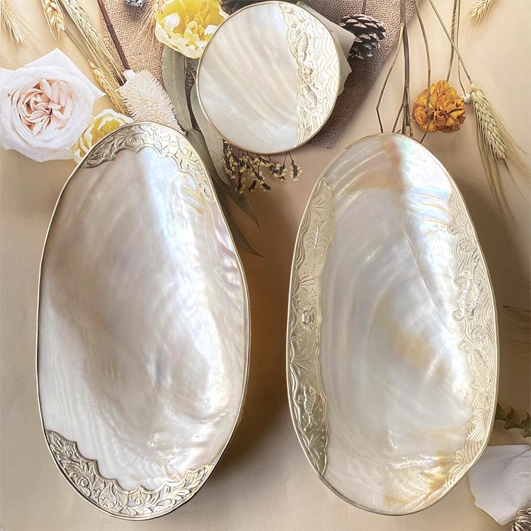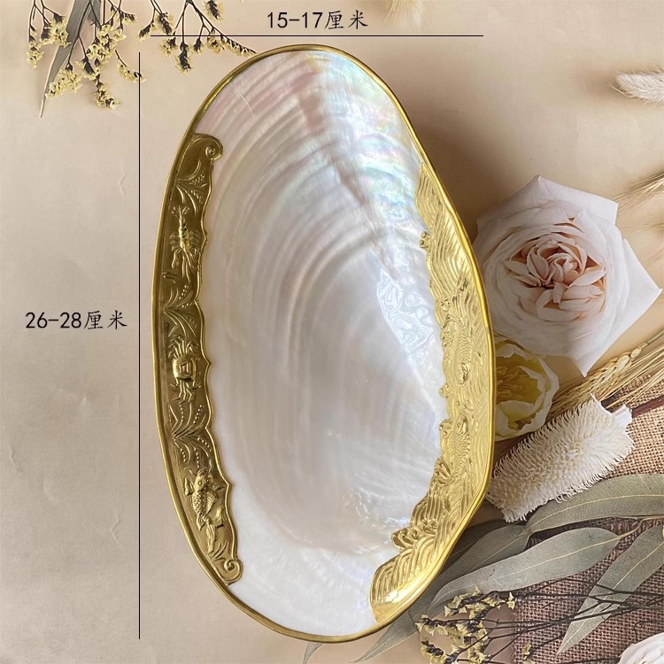 Silver short side studded year after year with fish gold long edge studded year with fish silver and round seashells saucer gold inlaid side shell disc group round and round Qi family Three sets of pairs of fish with fish year after year