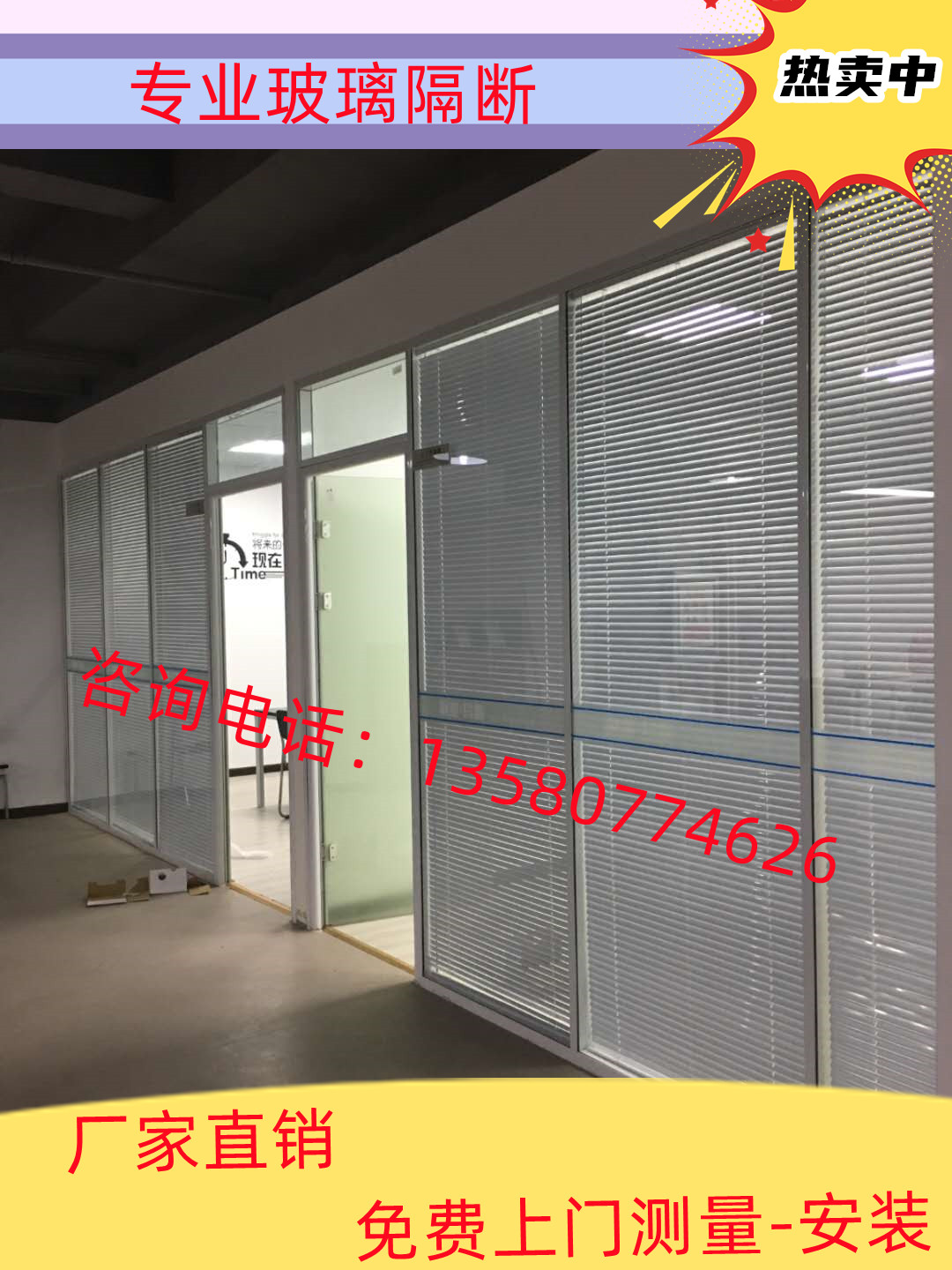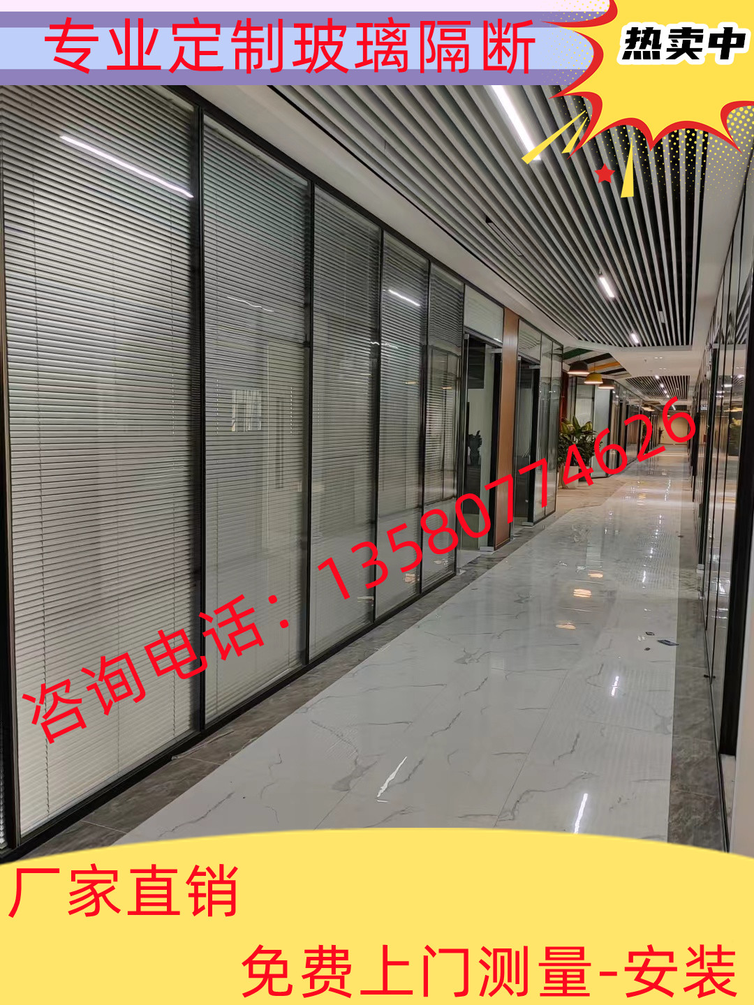 Shenzhen Office Glass Partition Wall Double Layer Glass Clip Shutter Aluminum Alloy High Compartment Finished Manufacturer Direct-Taobao