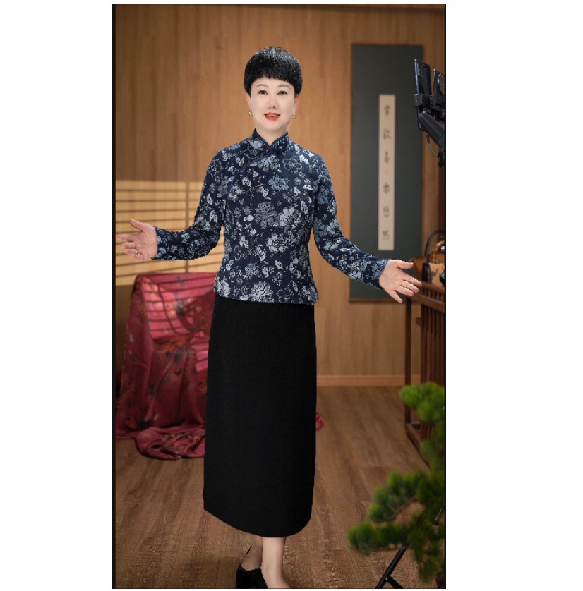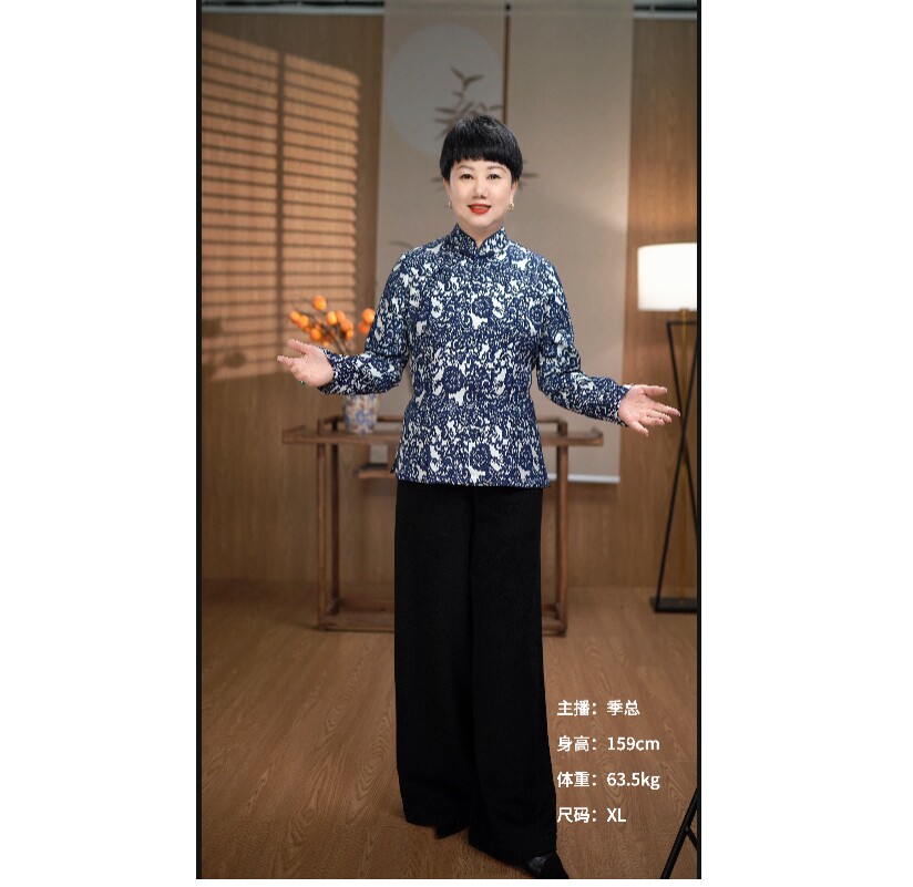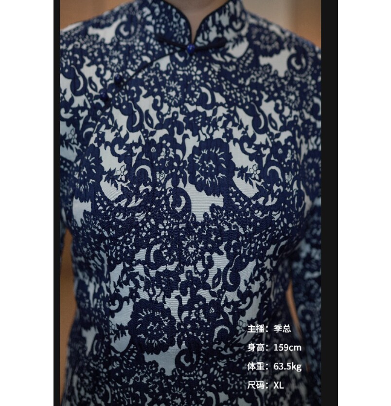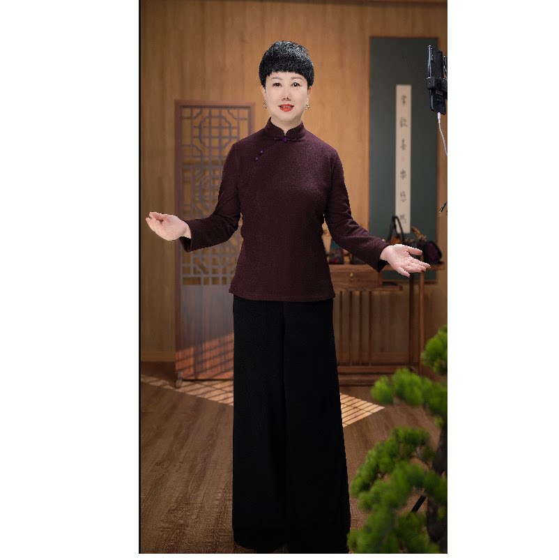 New wool cotton elastic jacquard retro disc buckle upright collar short flag-gown blouses A8639-Taobao