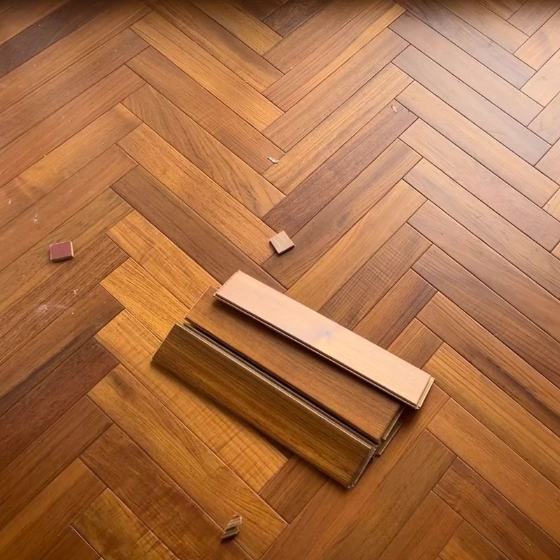 Myanmar Old Teak Wood Pure Solid Wood Interior Renovation Second Hand Floor Herringbone Parquet Floor Warm Lock Catch Method Floor-Taobao