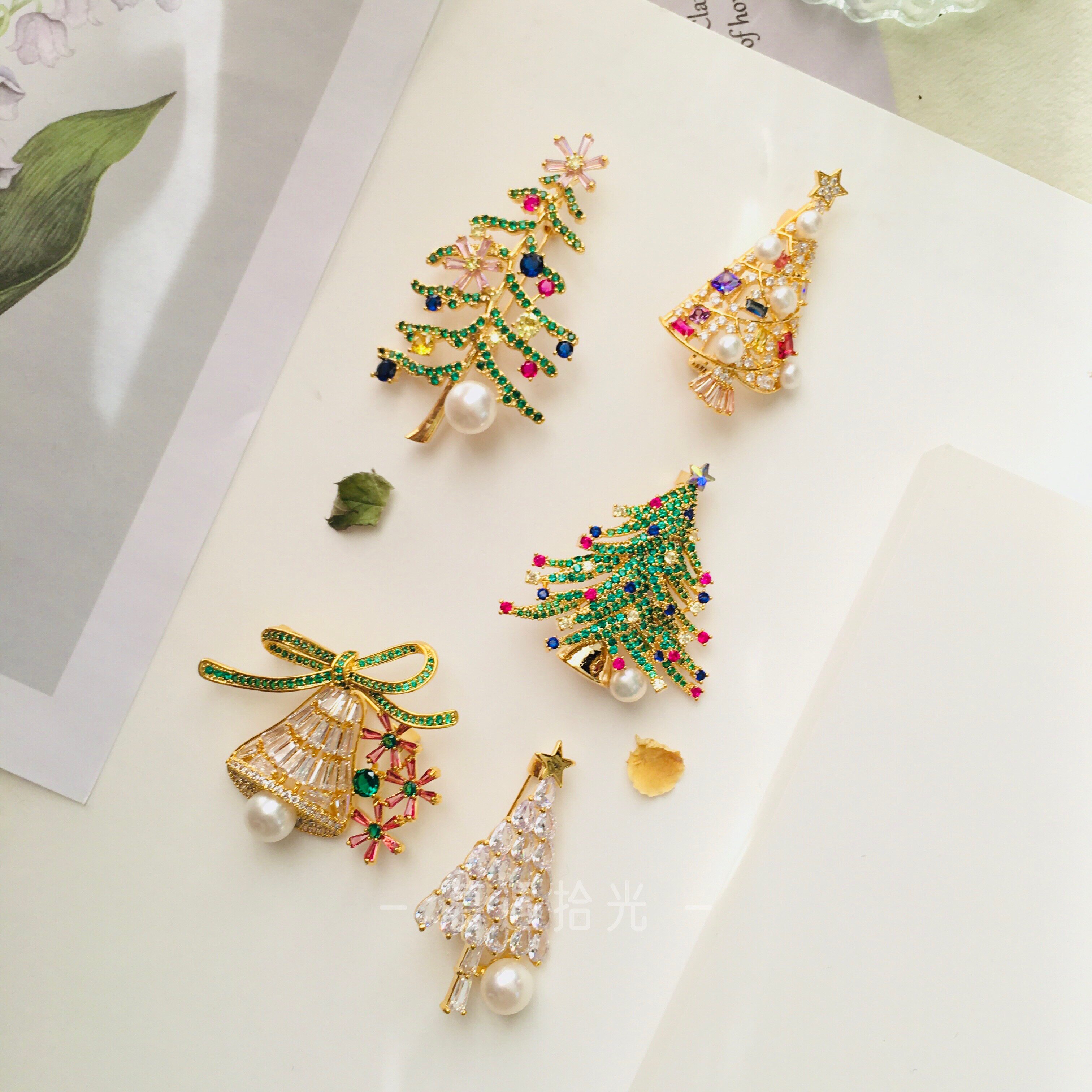 Mousse ten light Christmas atmosphere Christmas tree bell Bell Gift Chest Pin Natural Bright Light Freshwater Pearl-Taobao