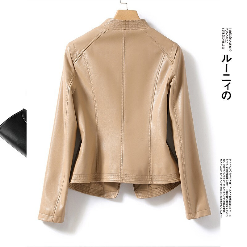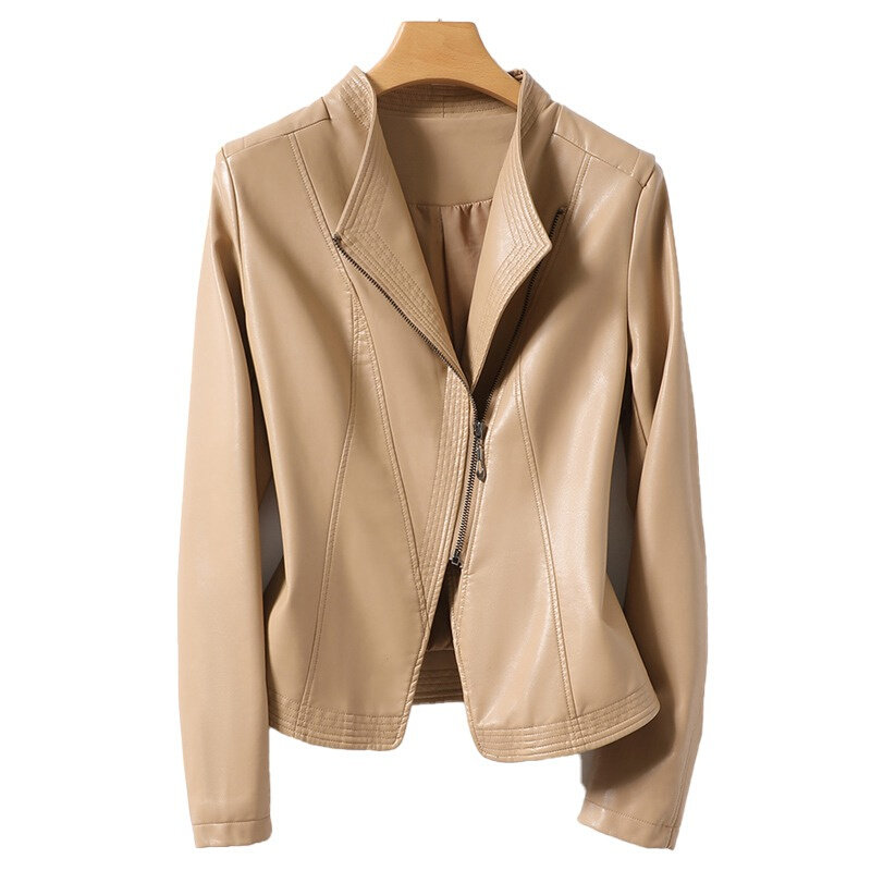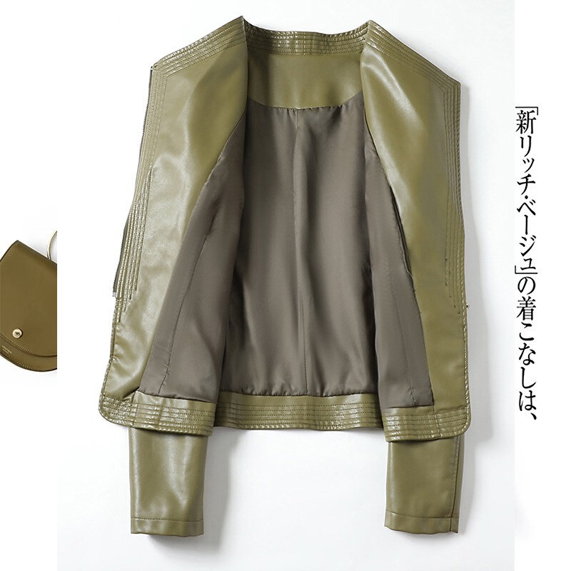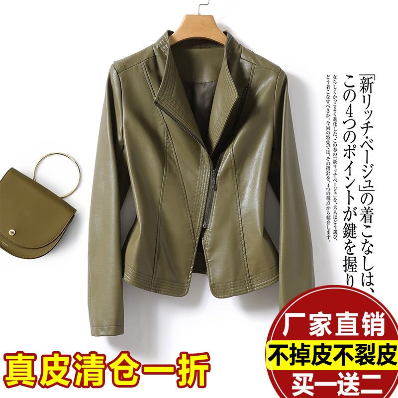 South Korean genuine leather skin-clad woman short 2023 Fall new fashion Collar Locomotive Leather Jacket-Taobao