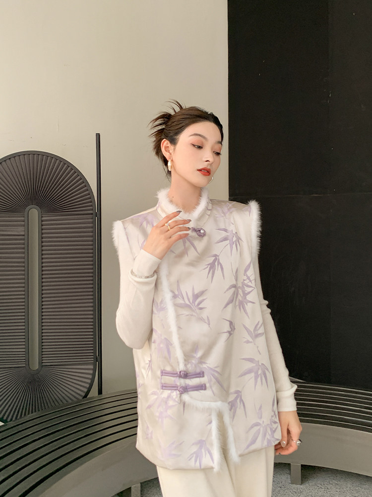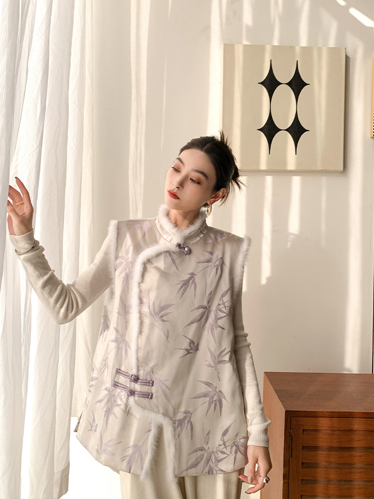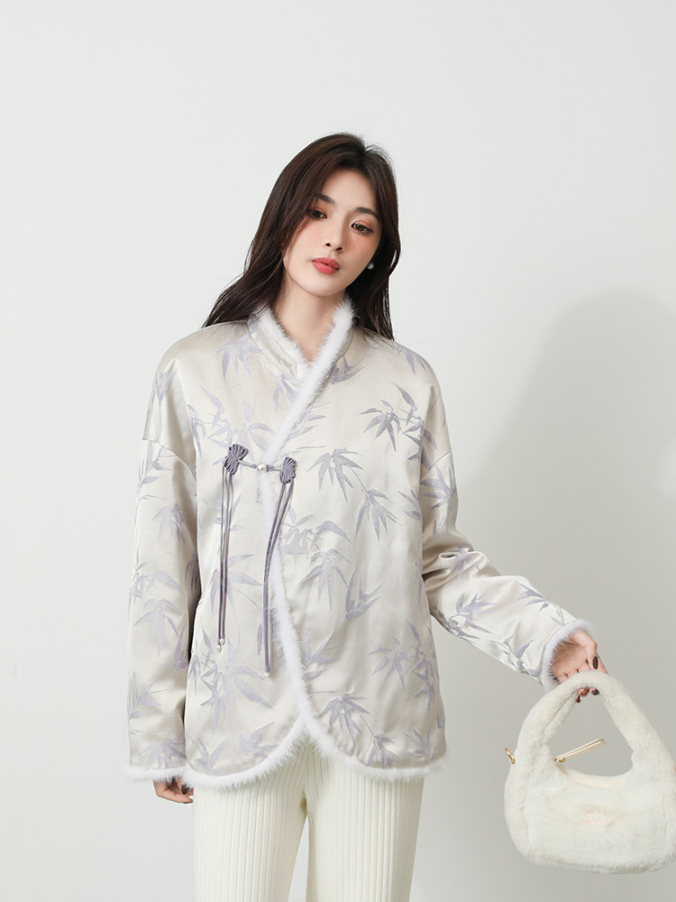 Gill LRKS "Purple Bamboo Water Mink National Wind" Water mink New Chinese style State wind disc button Bamboo film 90 goose down jacket DWM379-Taobao
