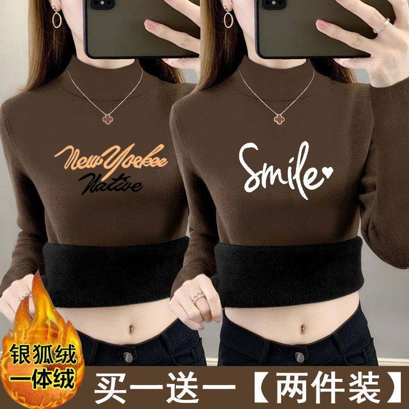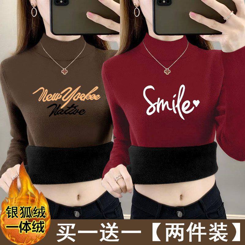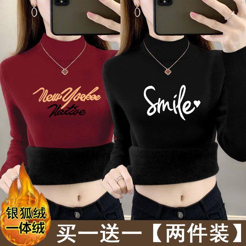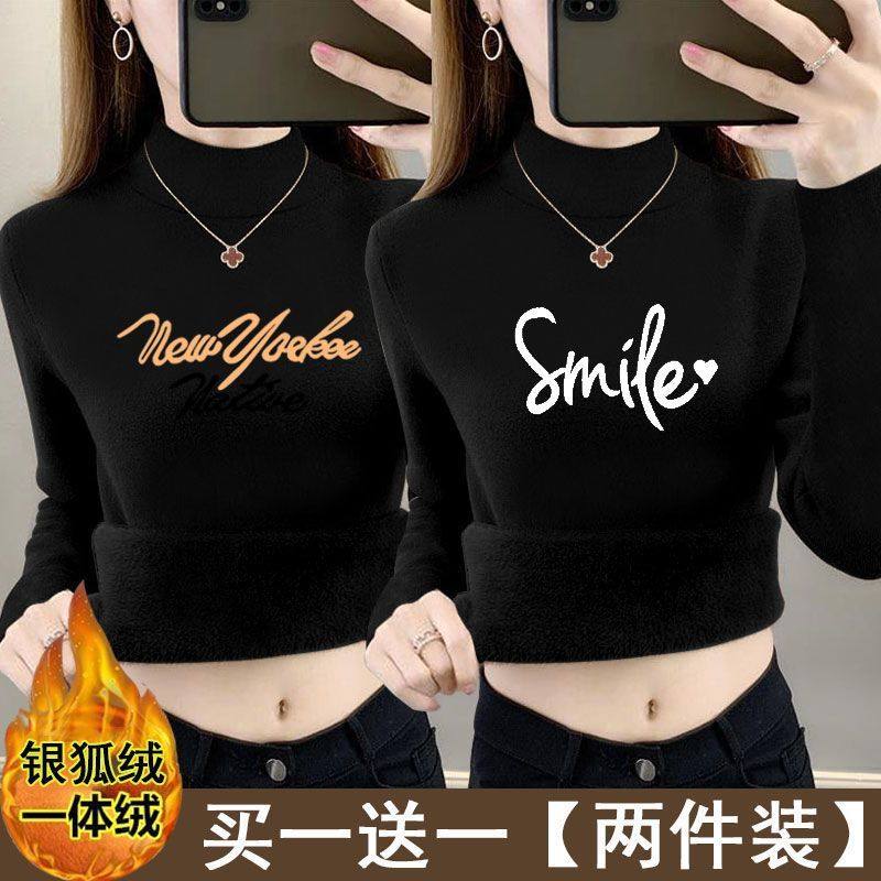 2023 autumn winter new ladies plus suede thickened half-height collar undershirt with slim fit 100 lap long sleeves warm blouses-Taobao
