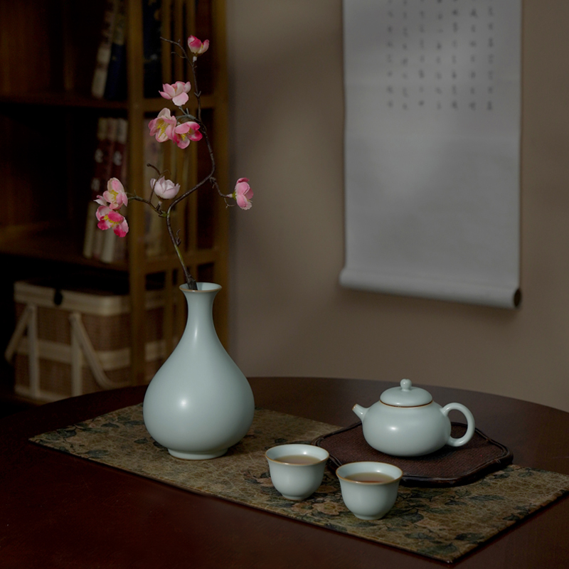 Ru Kiln Jade Pot Spring Bottle Jingdezhen Porcelain Vase Swing room Flower Arrangement Light Lavish Imitation Ancient Porcelain Gift Box Installed Green Porcelain-Taobao