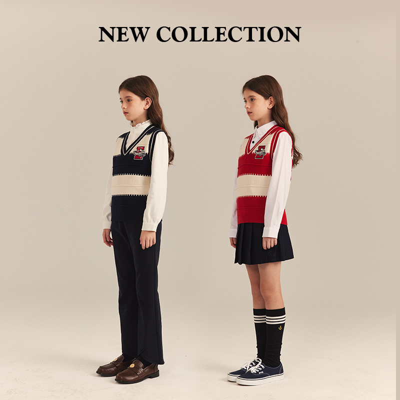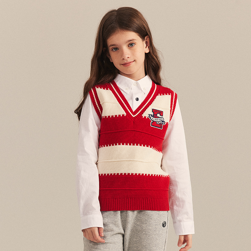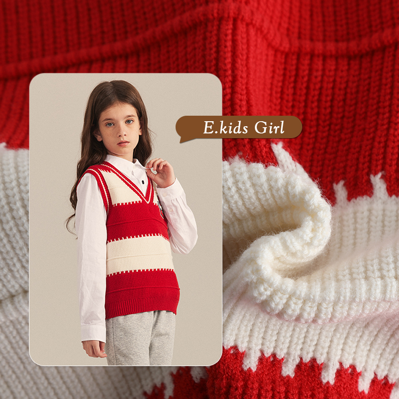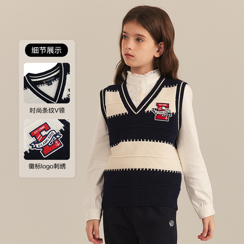 eland kids clothing romance childlike 2024 spring new pint girl retro casual hit color V collar knit vest-Taobao