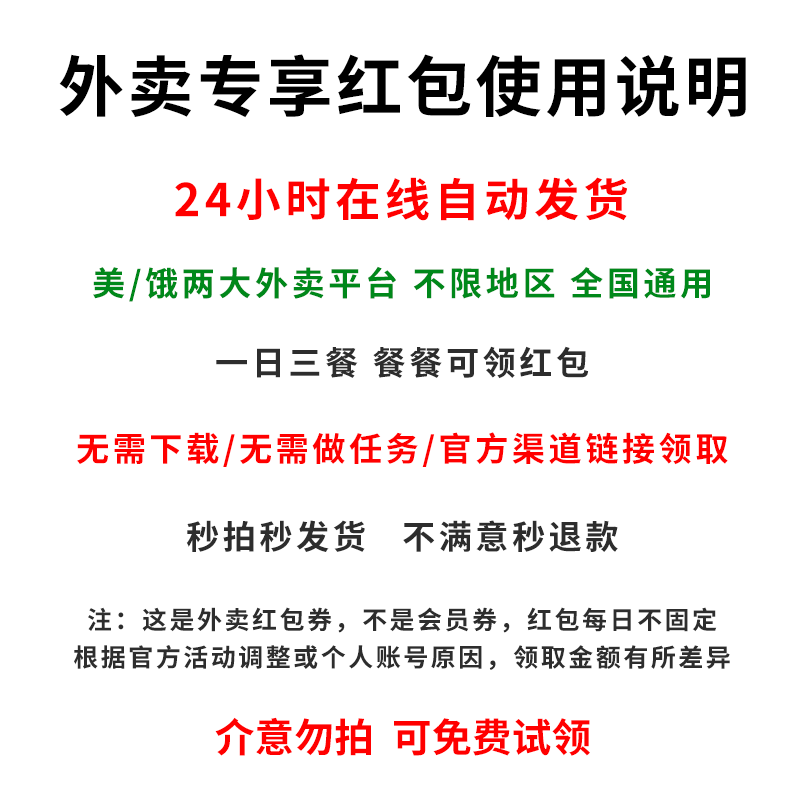 Hungry for takeaway coupons No threshold universal red packets hungry for takeaway members Voucher Vouchers National Generic-Taobao