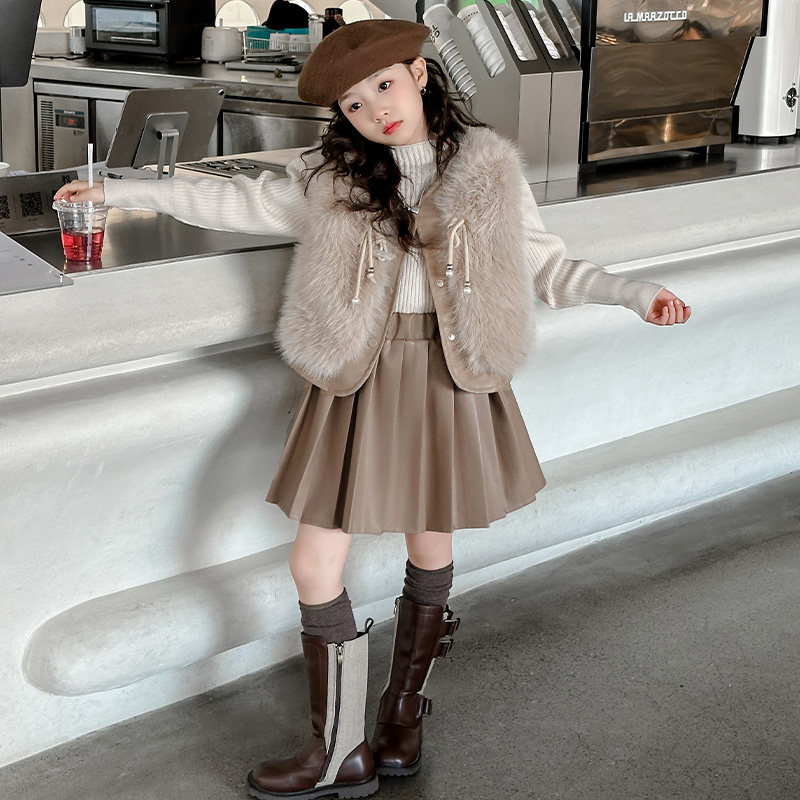 Girl Winter Ocean Gas Korean Version Leather Grass One-piece Dress 2023 New Children Winter Clothing Plus Suede Lady Dresses Suit-Taobao