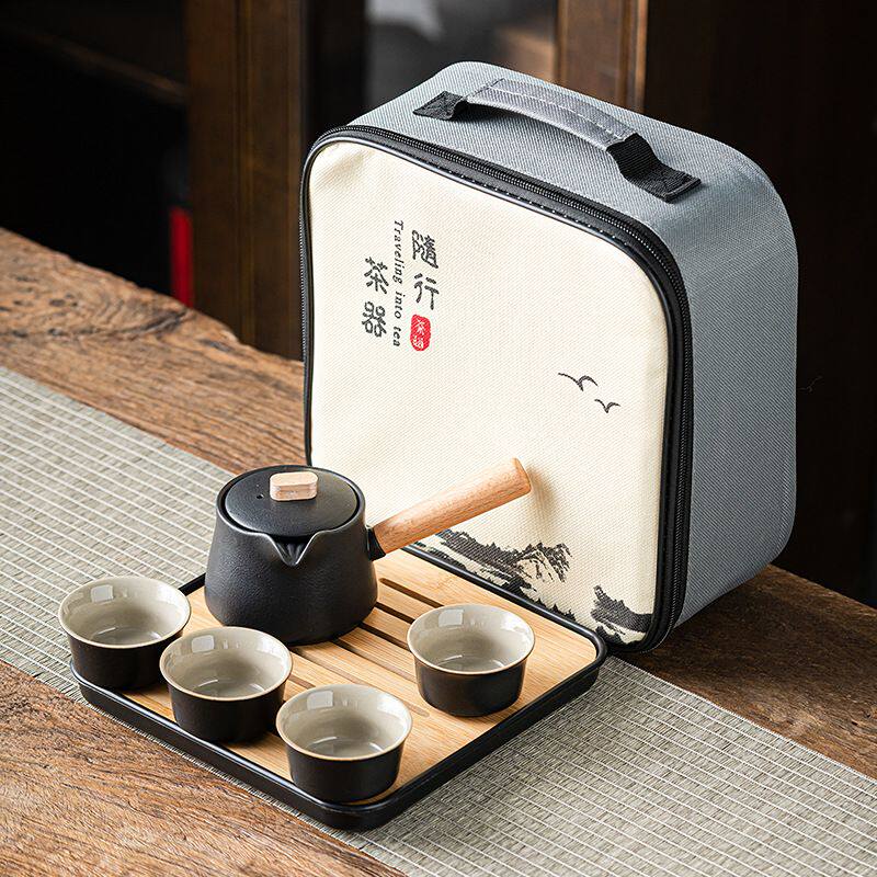 Elegant and quiet contempote side take the pot one pot with four cups + tea tray + accompanying travel bag Jameen the side of the pot (nine pieces) + hard bag travel fit the pot (nine pieces) + middle number disc + hard bag