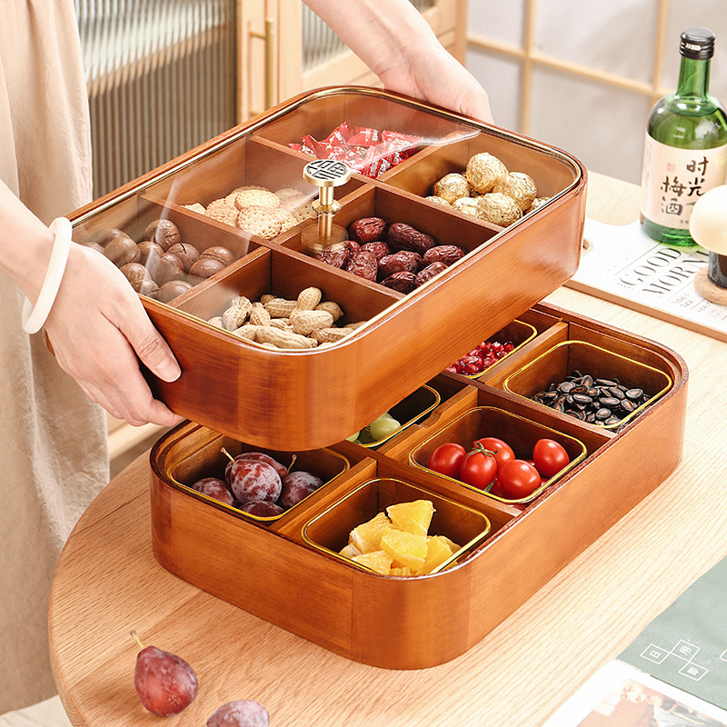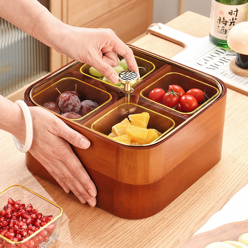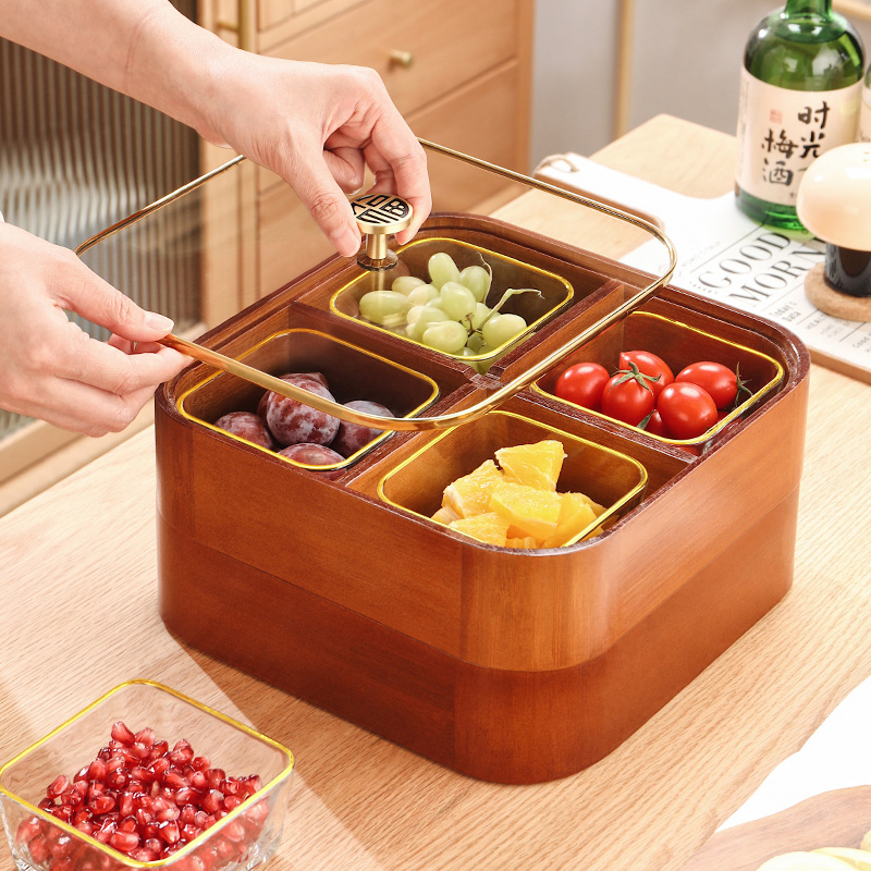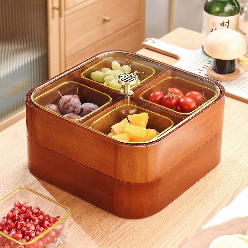 Single-layer four-lattice solid wood dry fruit case Double-layer four-lattice solid wood dry fruit box Phnom Penh glass bowl 4 double-layer four-grid solid wood dry fruit box Phnom Penh glass bowl 4 double-layer four