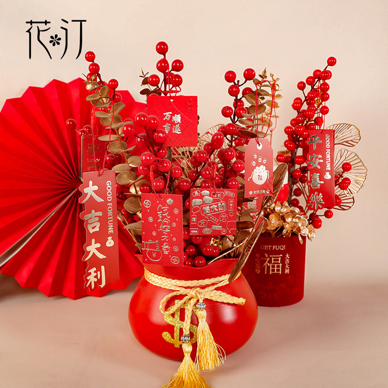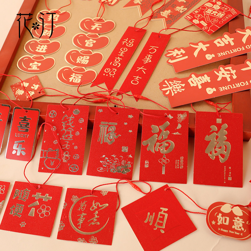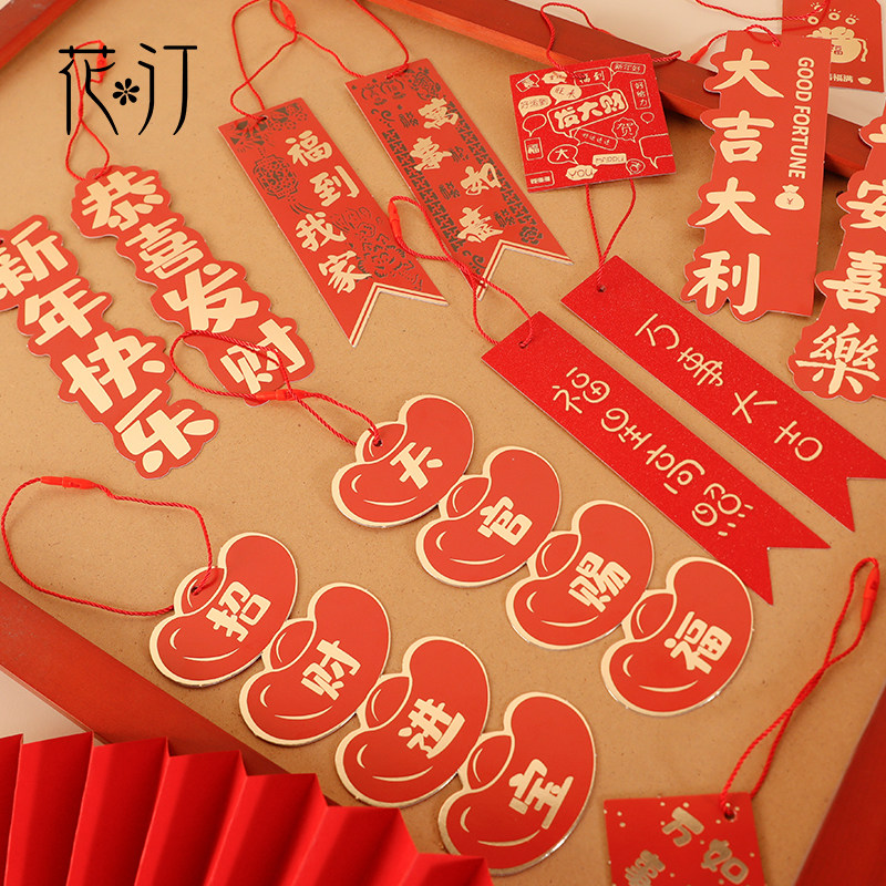 New Year's Spring Festival blessings with greeting card pendants Scene arrangement Lunar New Year's Eve Bouquet Happiness-Festive Chanka Card Decorations-Taobao