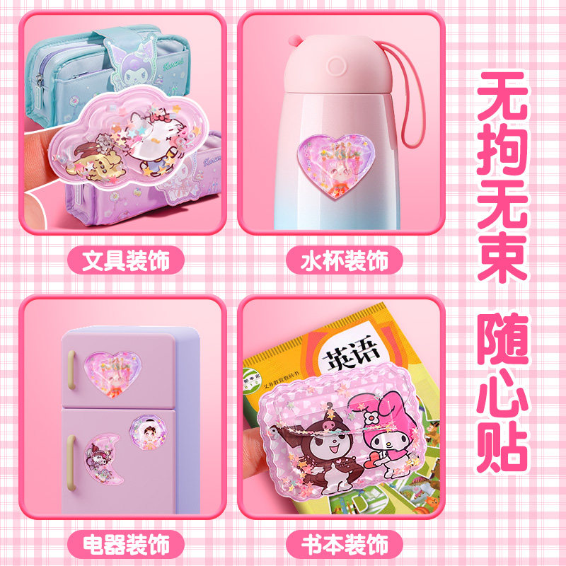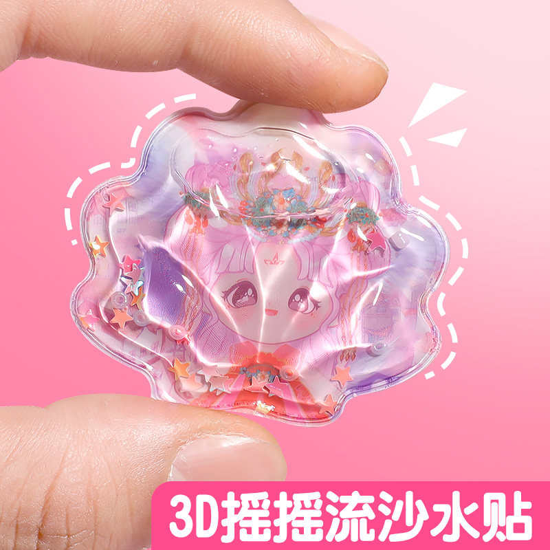 Cartoon Creativity 3D Rocking Water Stickers Children Elementary School Kids Pot Oil Colorful Cute Teenage Girl Hearts Three-dimensional Decorated Crystal Stickhand Ledger Cartoon Streaming Sand Water Paste Painting High Face Value Kindergarten Award Sticker-Taobao