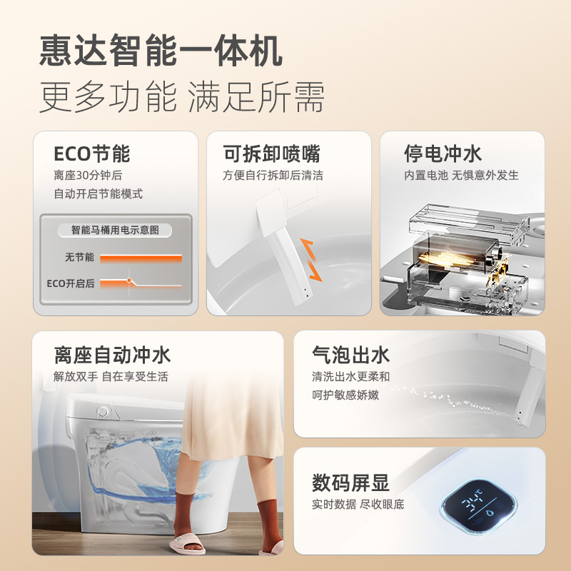 Hip Wash Woman Wash Seat Circle Heating Water Temperature Regulation Flushing Water Pressure Regulation Drying Nozzle Self-Cleaning Automatic Deodorising Remote Control Nozzle Moving Wash I.e. Hot Type