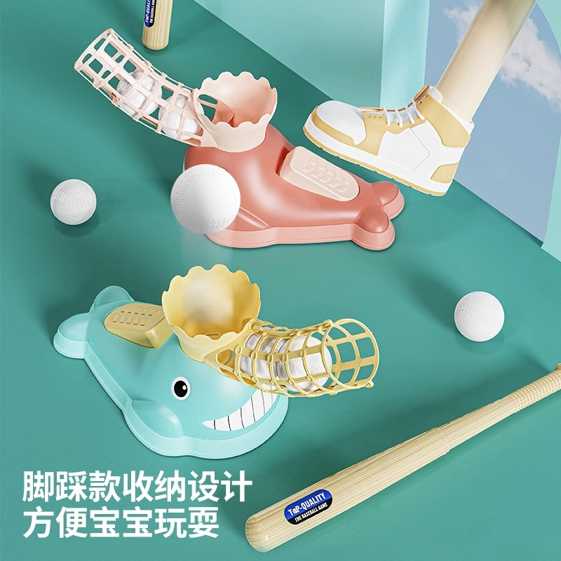 Children Cartoon Whale Baseball Toy Solo Sports Ejection Suit Indoor Outfoot Launcher Boy-Taobao
