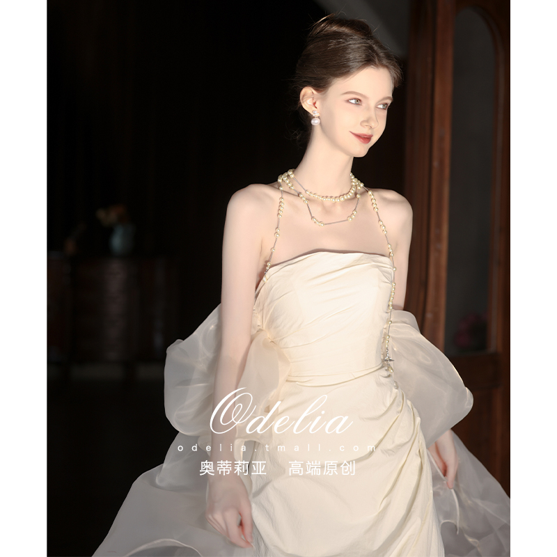 odelia < wings > French satin light wedding dresses bridal gown dress 2023 new brides to get married out of the house-Taobao