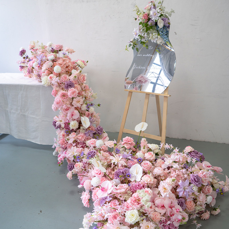 Pink Long Strips Table Flower Mirror Exhibition Board Floral Suit