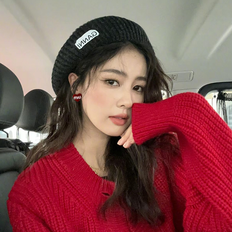 Advanced senses red earrings female light lavish temperament autumn and winter Lunar New Year Earrings 2023 new exploits New Year's small crowdsourced earrings-Taobao