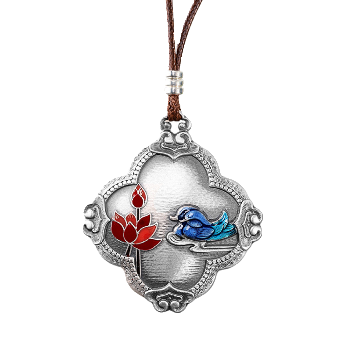 999 foot silver necklace-mandarin duck 999 foot silver necklace-peony