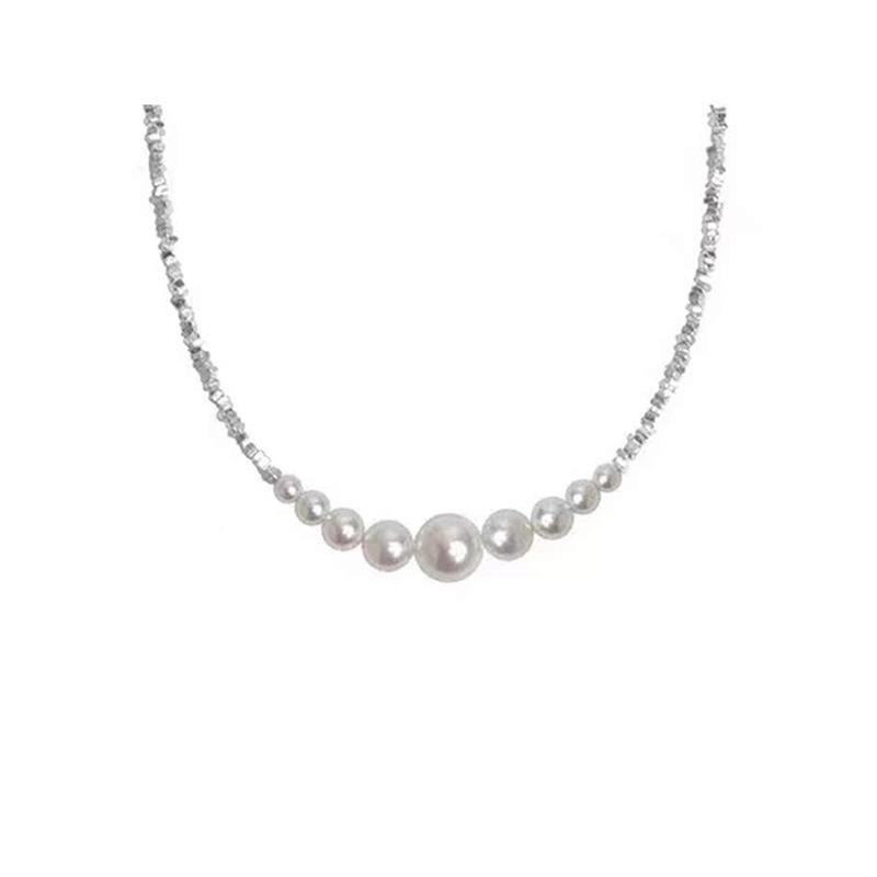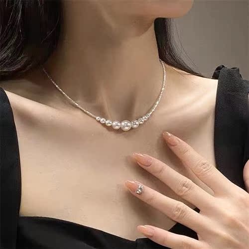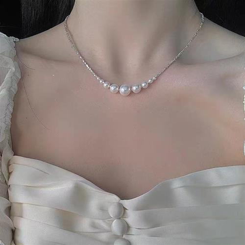 S999 Pure Silver Chopped Silver Subnecklace Girl Light Extravaganza Superior Pearl Smile Lock Bone Chain Valentine's Gift-Taobao