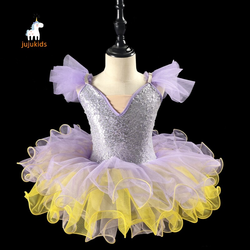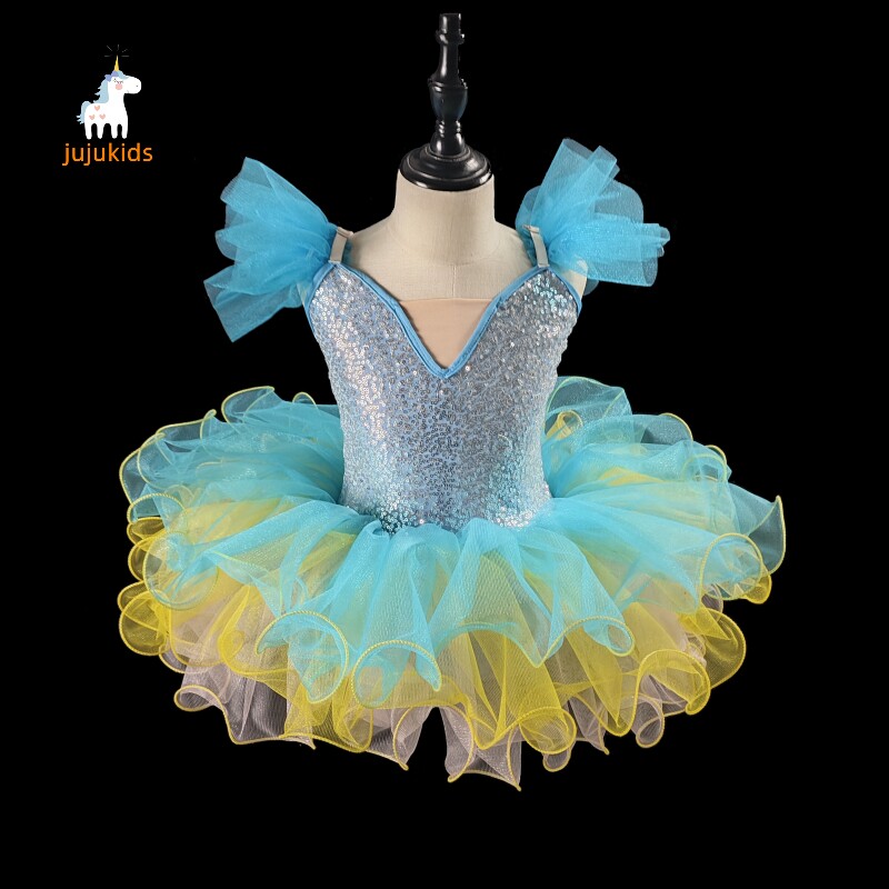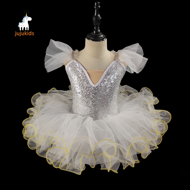 New children's sequin dance suit girl acting out fluffy dress girl modern dance gown walk show cute pink-Taobao