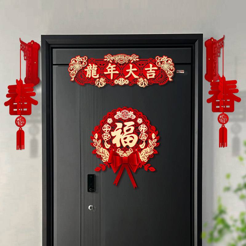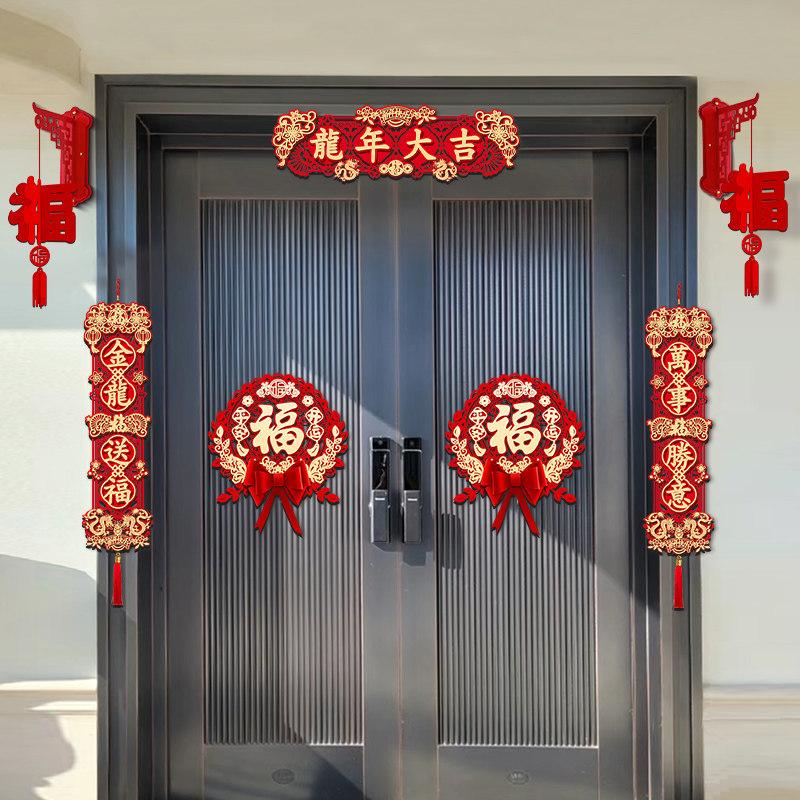 2024 new decoration doorway Fucalligraphy dragon year Scene arrangement New Year Small lantern Spring Festival New Year flocking red hanging decoration-Taobao