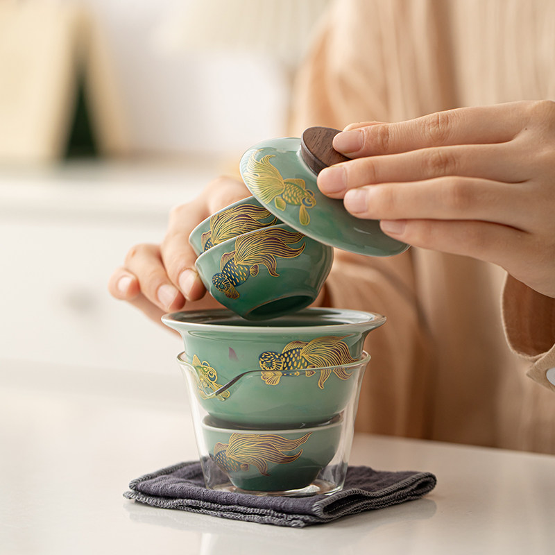 Qingyu-One pot of three quick guests (brocade carp) satisfactory bowl Qingyu-one pot of three quick guests (lotus flower) satisfactory cover bowl Qingyu-one pot of three express guests (brocade carp) horseshoe cover bowl Qingyu-one pot of three