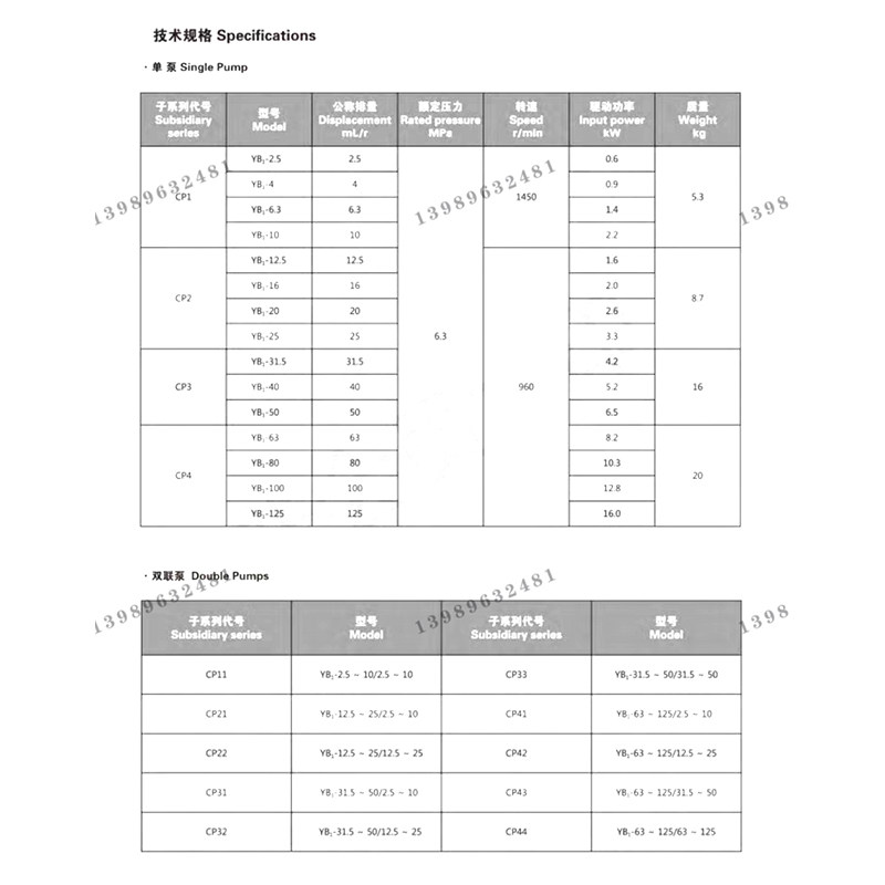 YB1-32YB1-25 reversal YB1-50YB1-63YB1-100 Other pumps Please contact customer service YB1-20YB1-12YB1-2 5